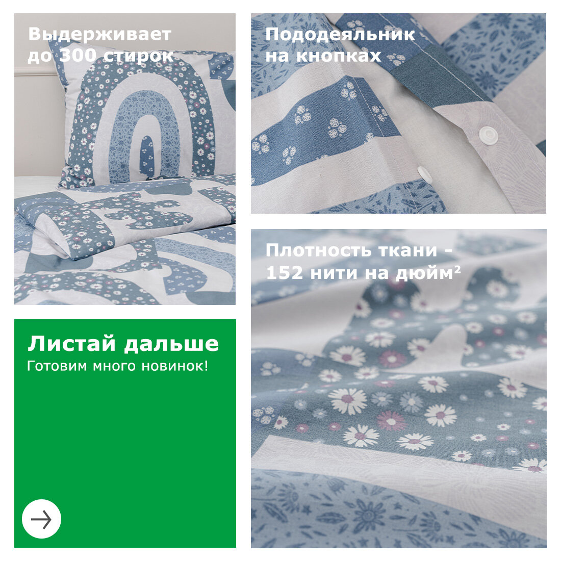 Постельное белье 1 5 спальное, YERRNA, перкаль из 100% хлопка, подходит под размеры икеа 1 656 ₽