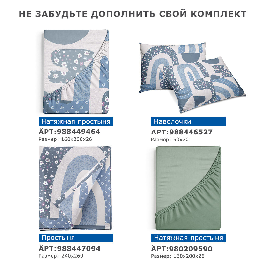 Комплект постельного белья 1 спальный YERRNA, наволочка 50х70 1шт, перкаль, синий, с2081шв/211911 1 408 ₽