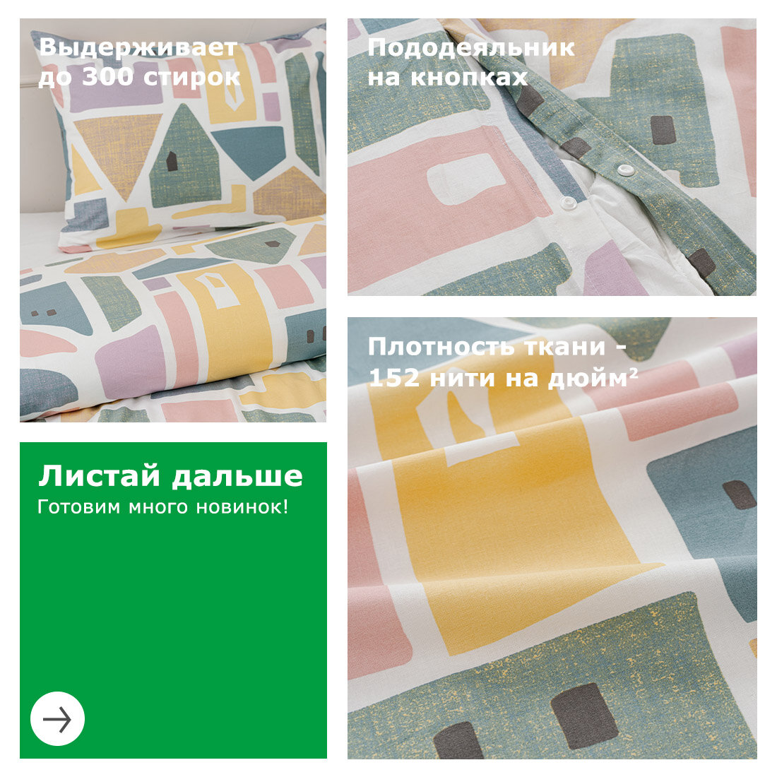 Постельное белье 1 5 спальное, YERRNA, перкаль из 100% хлопка, подходит под размеры икеа 1 656 ₽