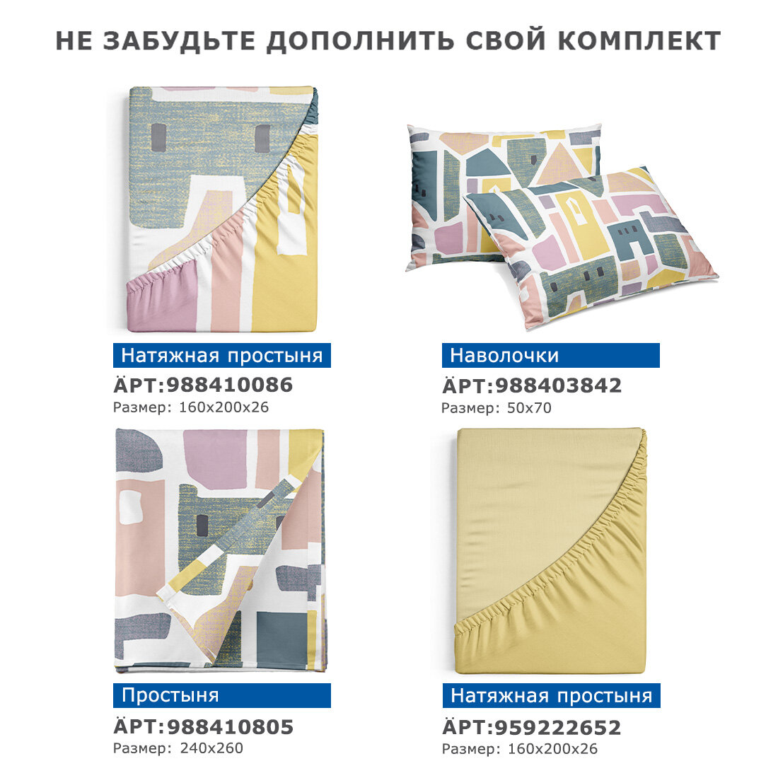 Отзывы на Комплект постельного белья, 2 спальный YERRNA, наволочки 50х70 2шт, перкаль, разноцветный, с2082шв/97512