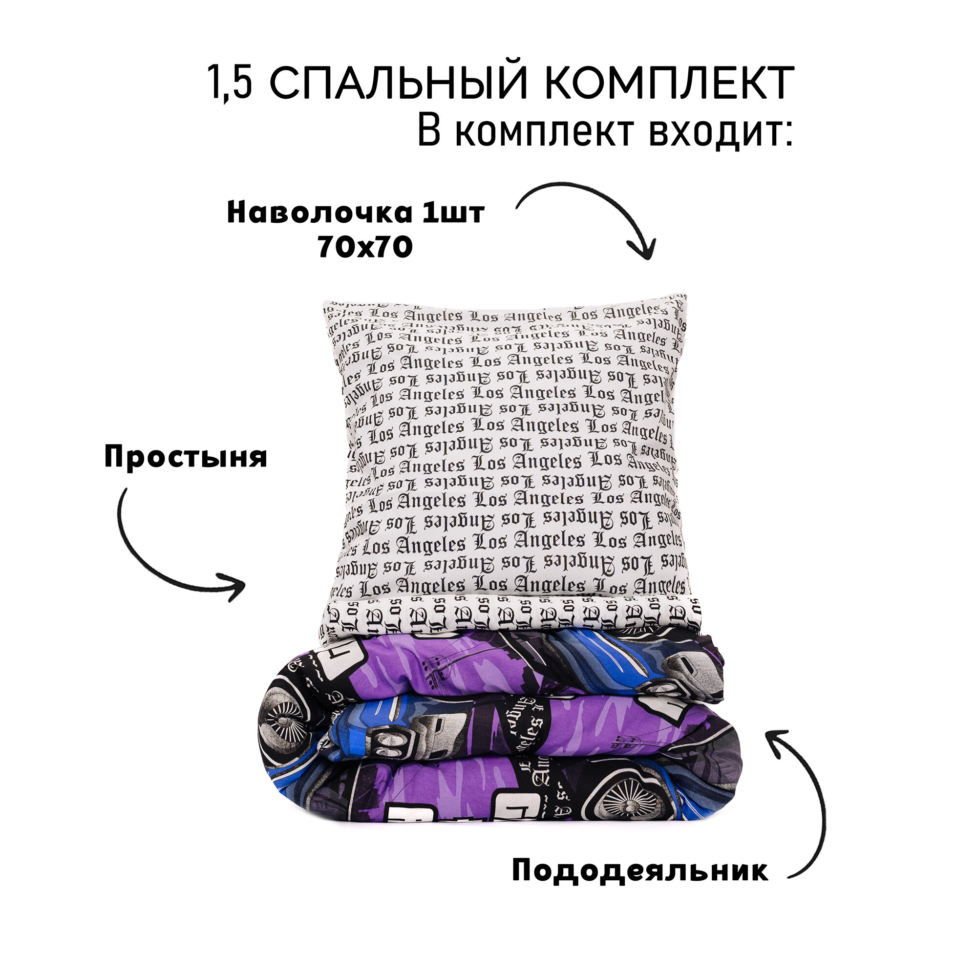 Постельное белье 1,5 спальное / Комплект постельного белья 1,5-спальный Galtex Компаньон бязь/ ГТА GTA разноцветный Лос Анджелес б/з информация: