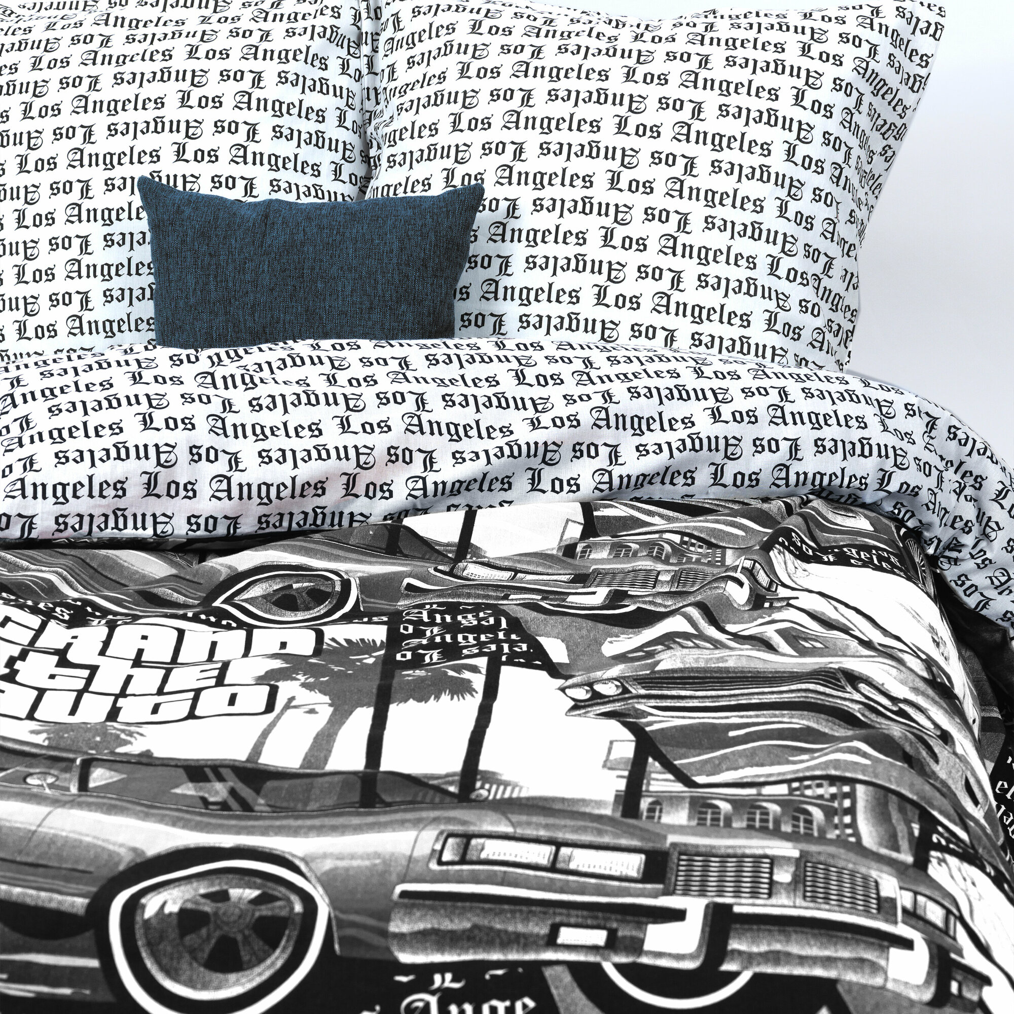 Постельное белье 1,5 спальное / Комплект постельного белья 1,5-спальный Galtex бязь ГТА GTA Лос Анджелес черно-белый информация: