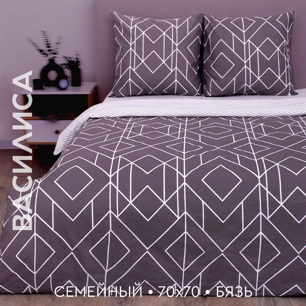 Постельное белье Василиса Семейное, Бязь, наволочки 70х70 см, Каро 3 100 ₽