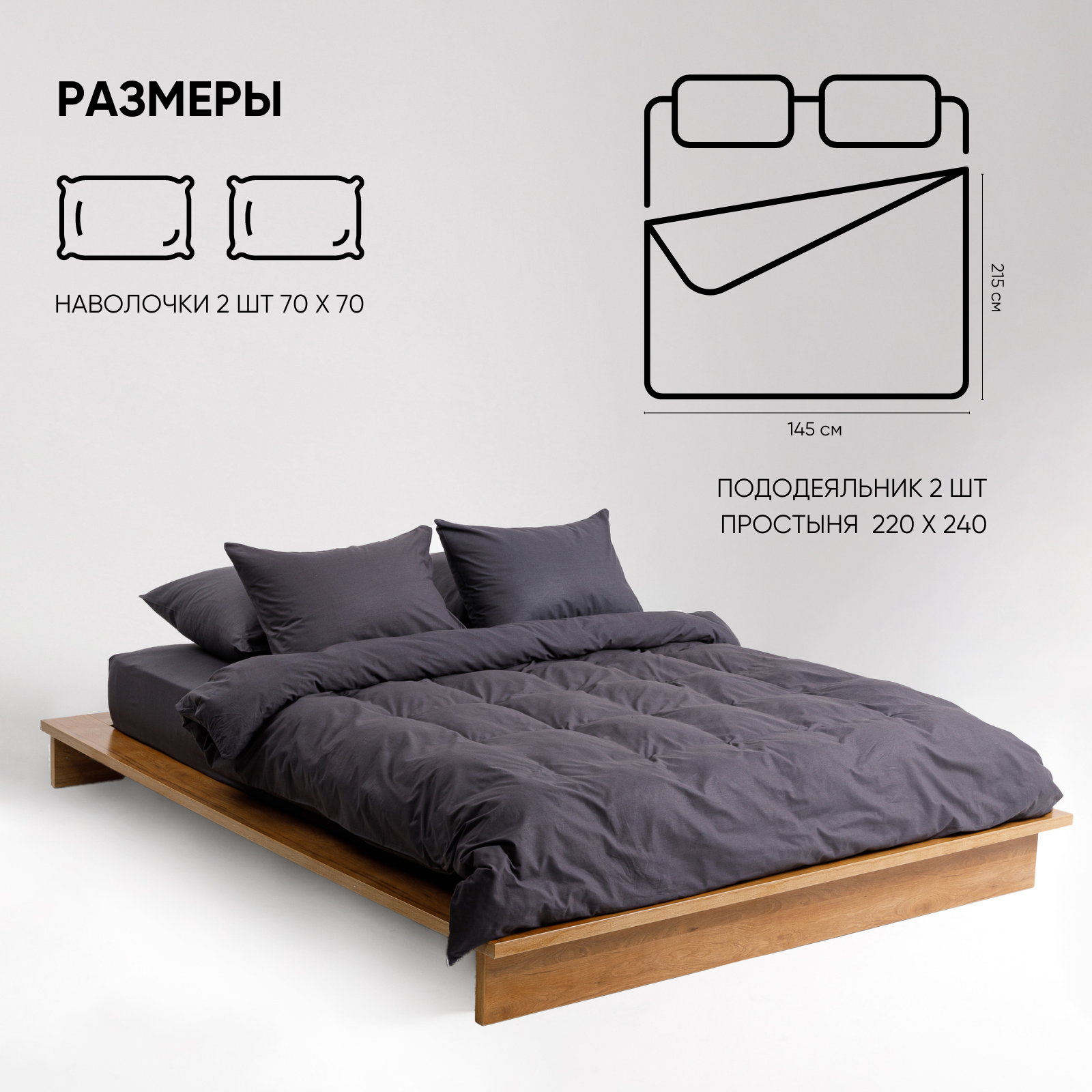 Постельное белье однотонное Urban Family (аналог икеа), Графит, 2 спальное с европростыней, наволочки 70х70, 100% хлопок, перкаль 2 123 ₽