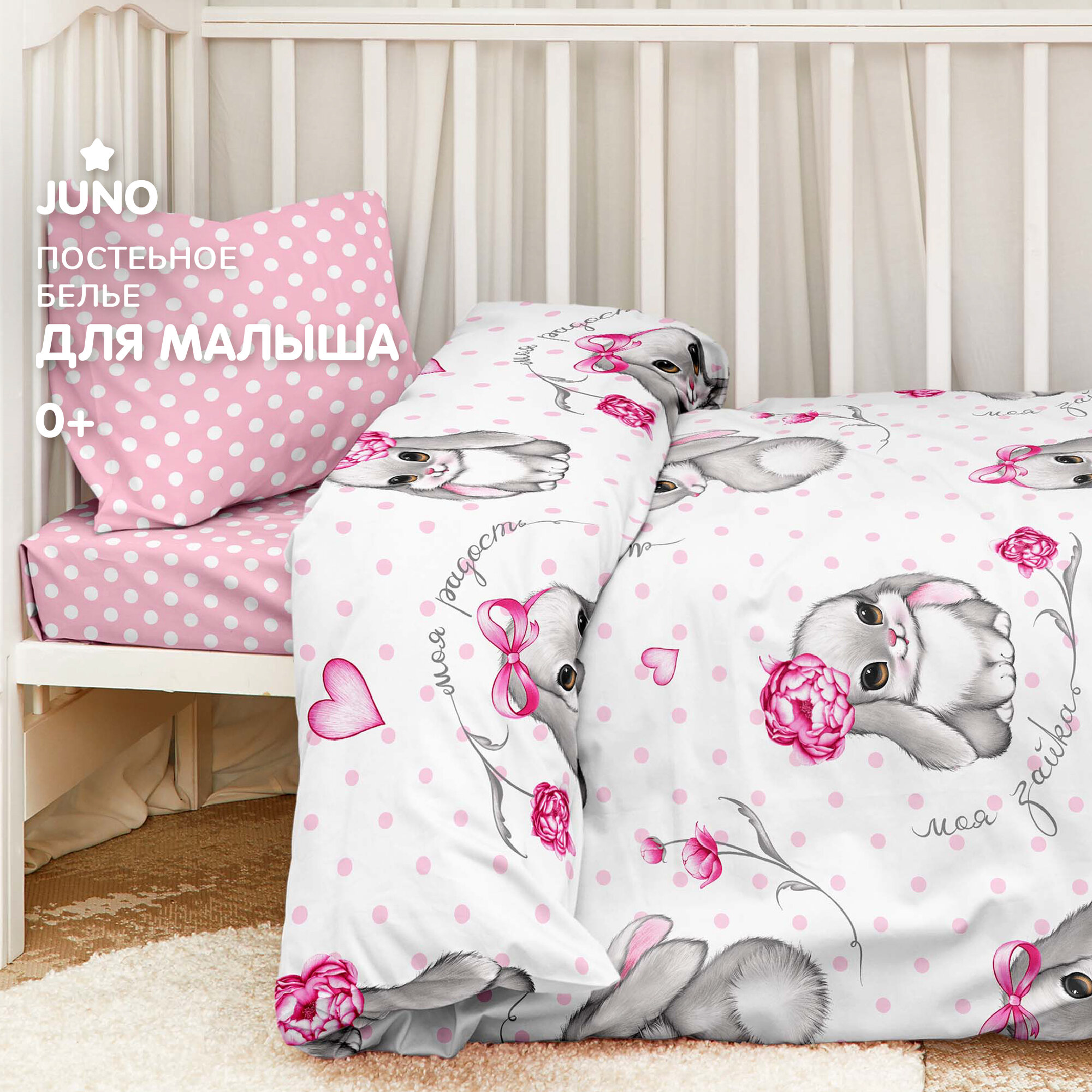 10 цен на Постельное белье детское 160х80 юниор Juno, поплин хлопок, 1 наволочка 40х60, детское постельное белье в кроватку Милые зайки, комплект для малыша, для девочки