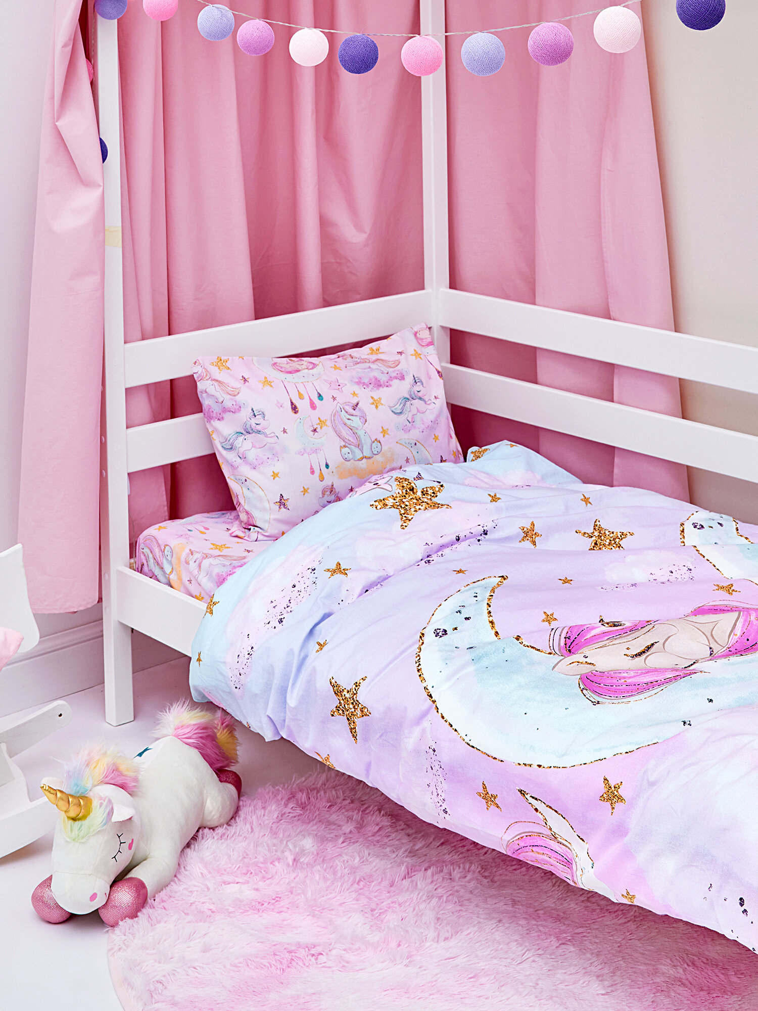 10 цен на Постельное белье детское 160х80 юниорjuno, поплин хлопок, 1 наволочка 40х60, детское постельное белье в кроватку Sleep Unicorn / Единорог, комплект для малыша, для девочки