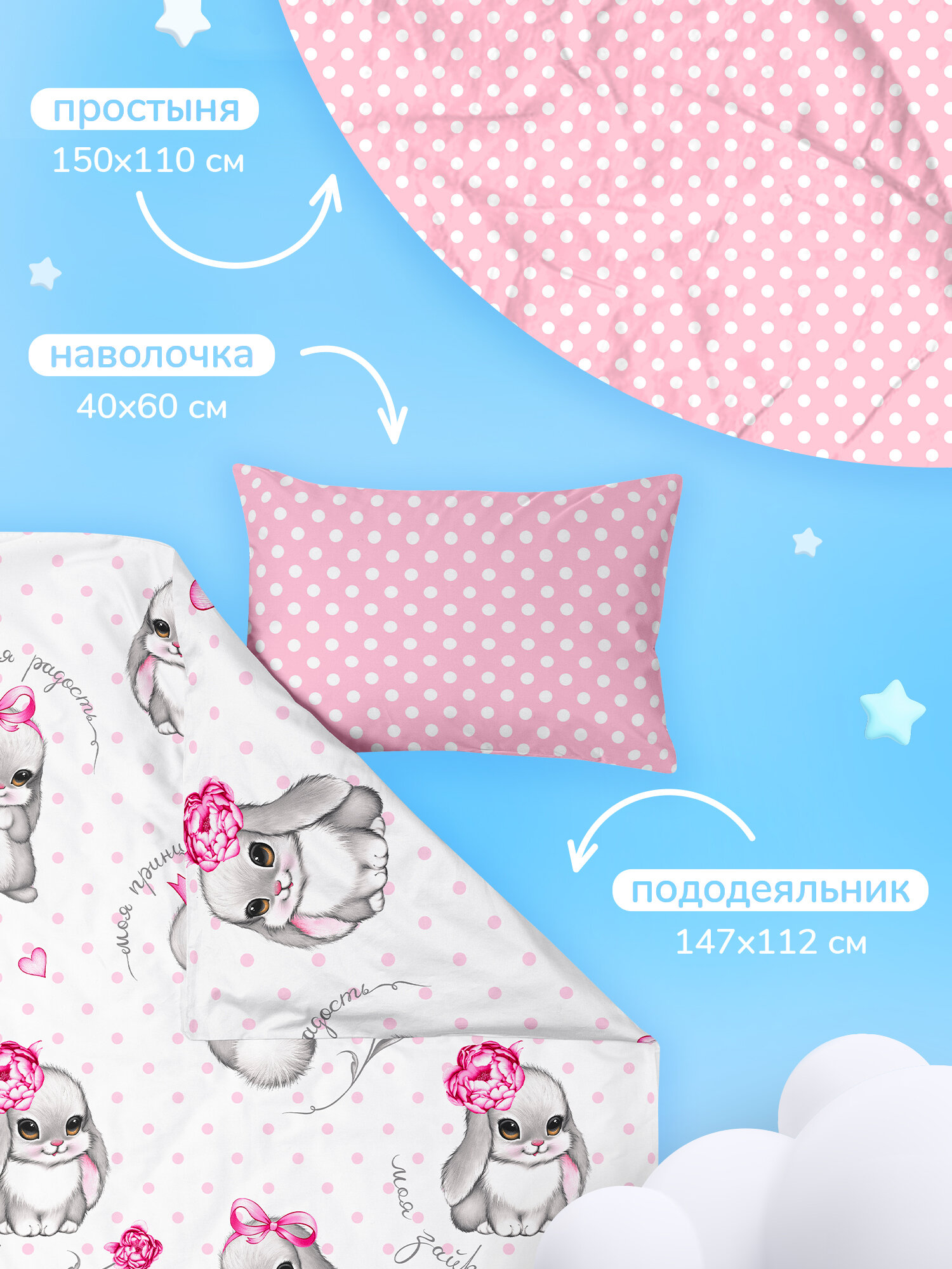 Отзывы на Детское постельное белье в кроватку для новорожденных Зайки, поплин хлопок, 1 наволочка 40х60, детское постельное белье в кроватку Juno ,Милые зайки, набор для девочки, мальчика