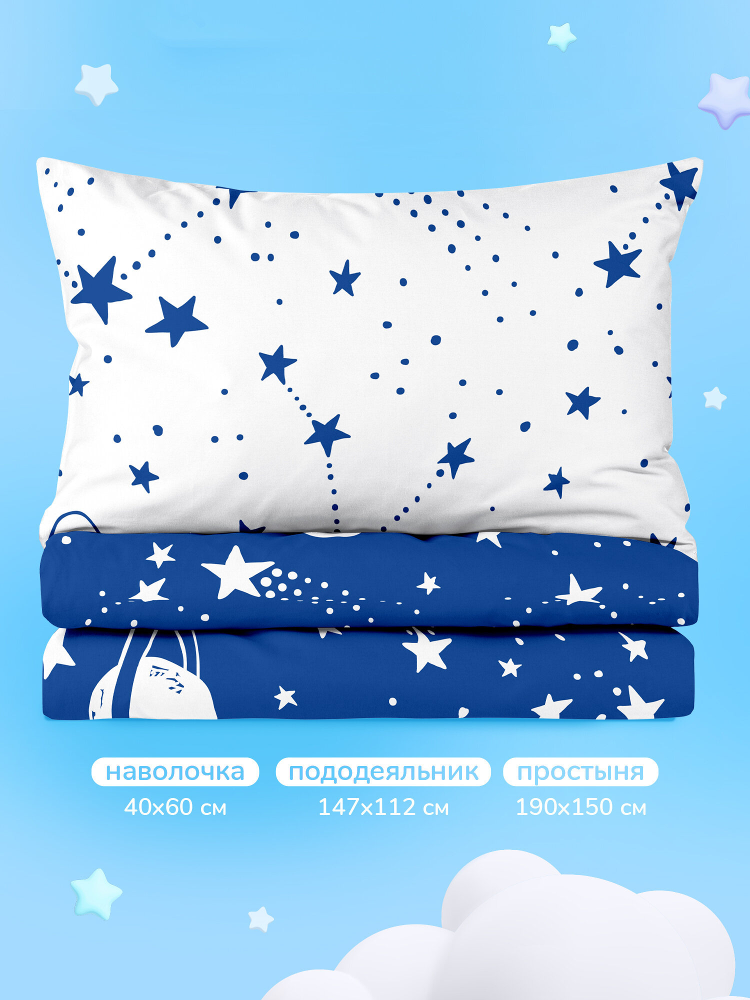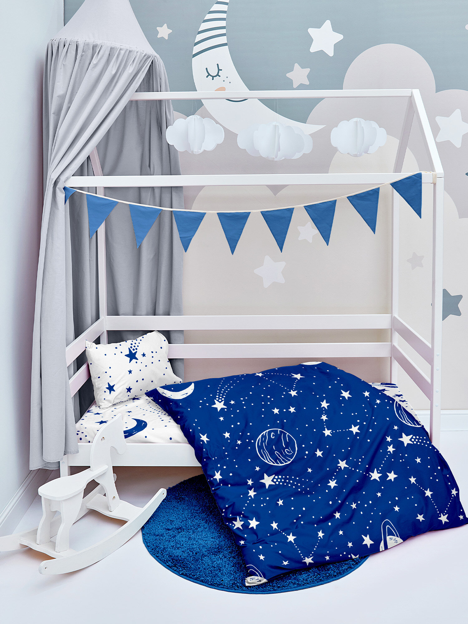 Постельное белье детское юниор 160х80 Juno, поплин хлопок, 1 наволочка 40х60, детское постельное белье в кроватку Звездное небо / Звездное небо 16584-1/16584-2, комплект для мальчика, для девочки информация: