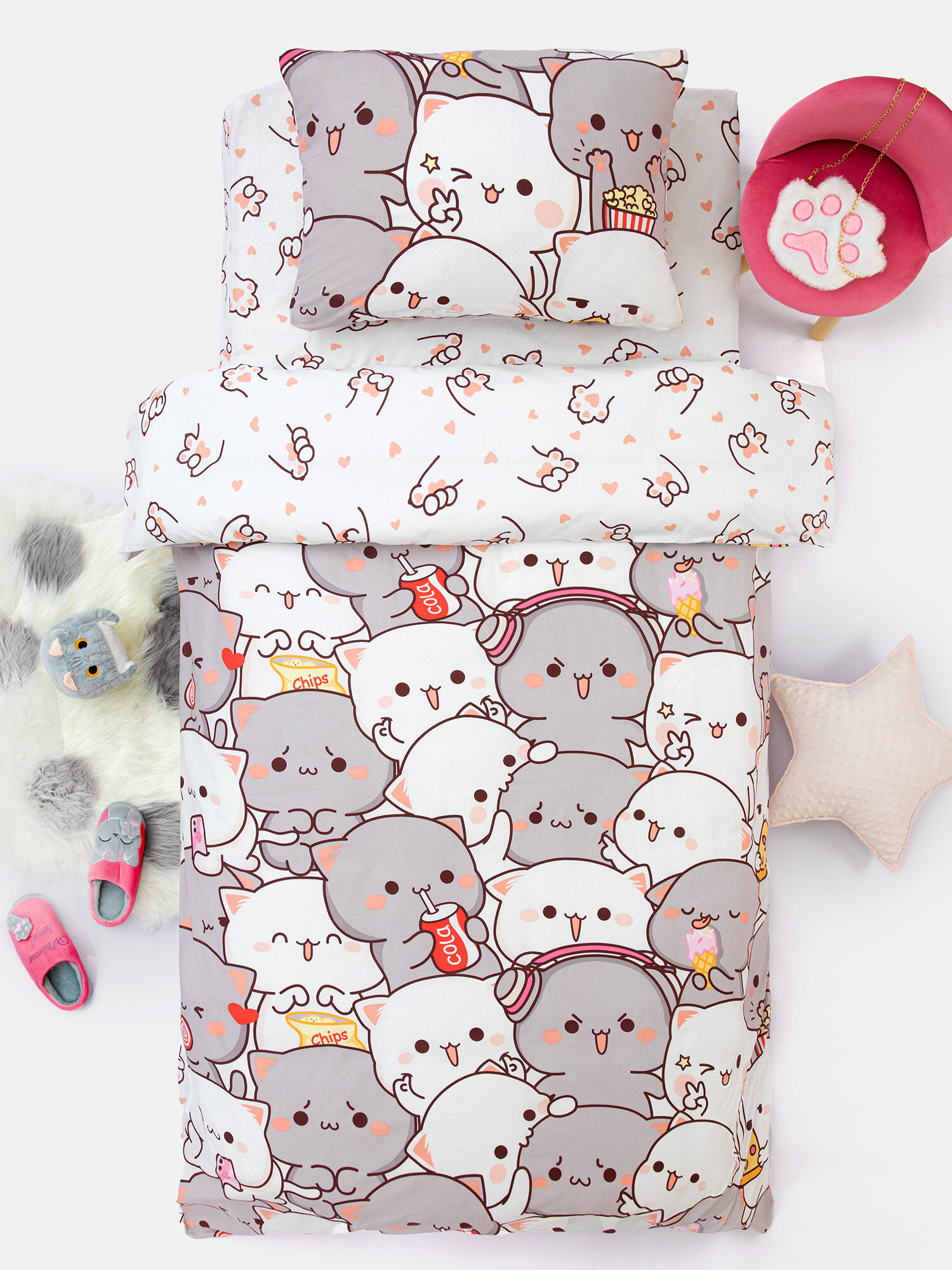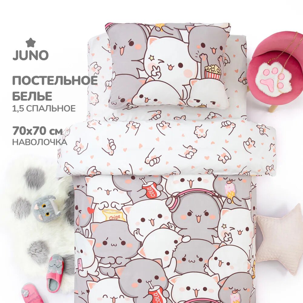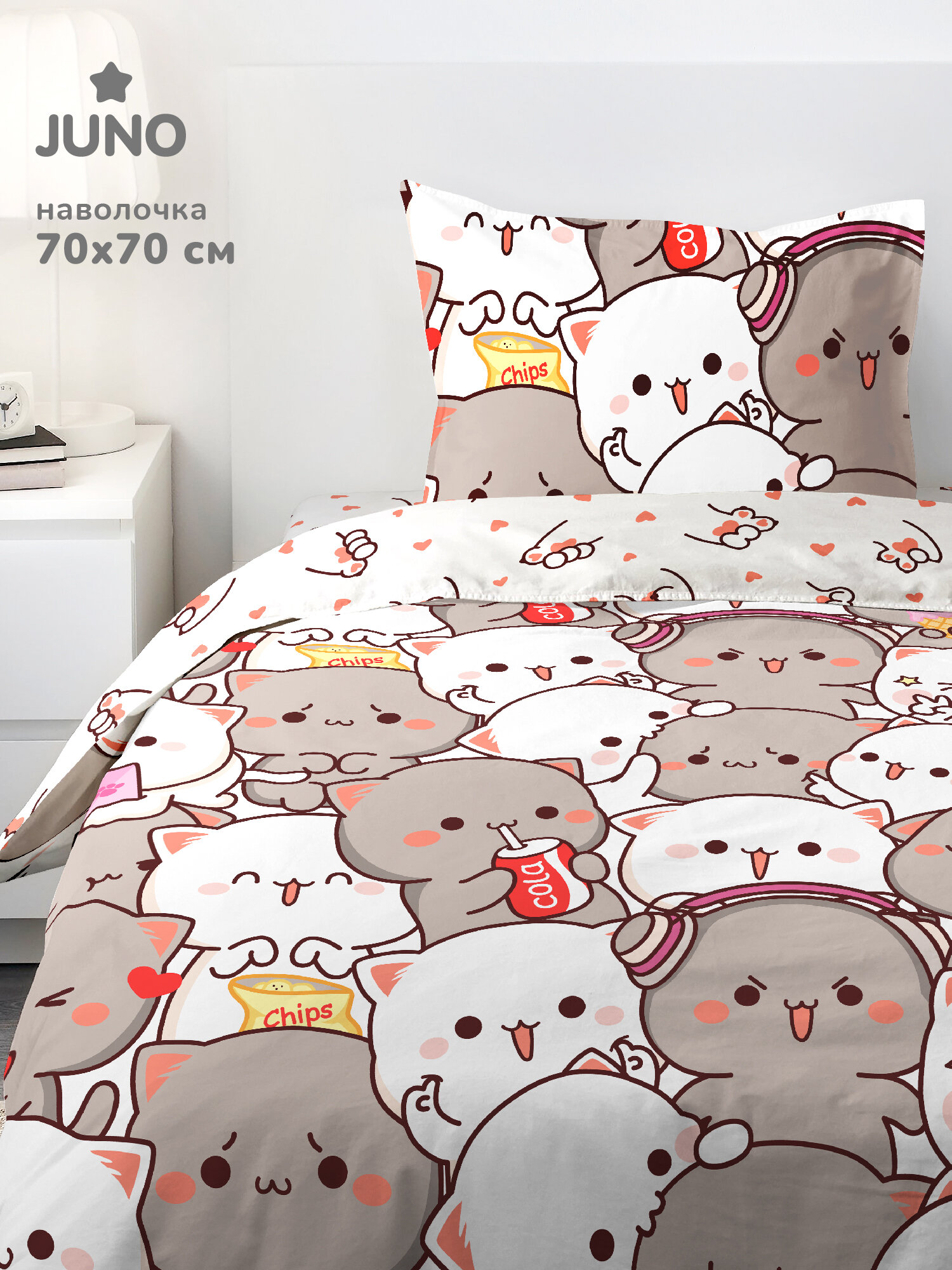 10 цен на Детское постельное белье 1,5 спальное Juno, поплин хлопок, 1 наволочка 70х70, Kawaii cats