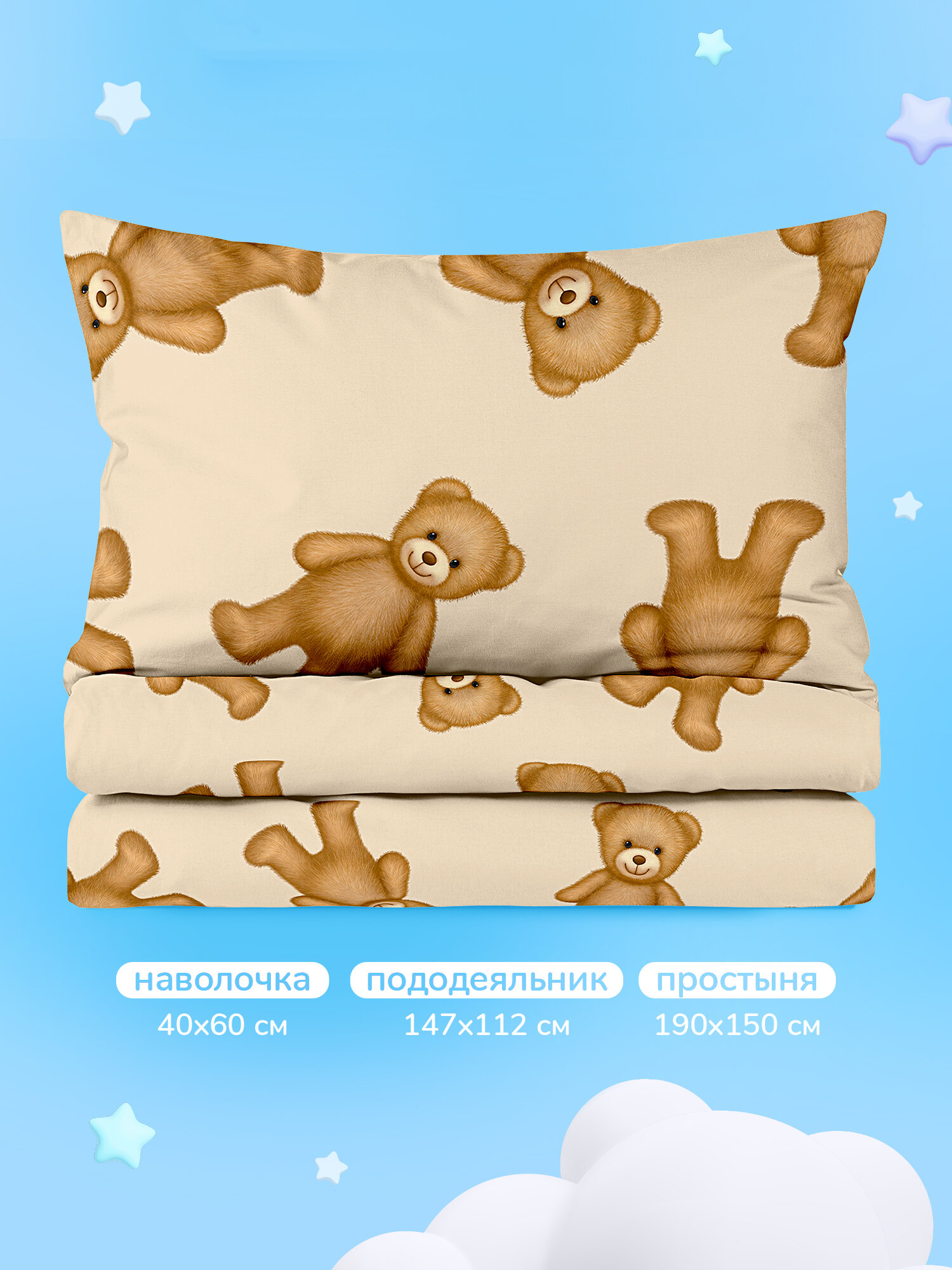 Детское постельное белье в кроватку Плюшевые мишки 160х80 Juno, поплин, 1 наволочка 40х60 информация:
