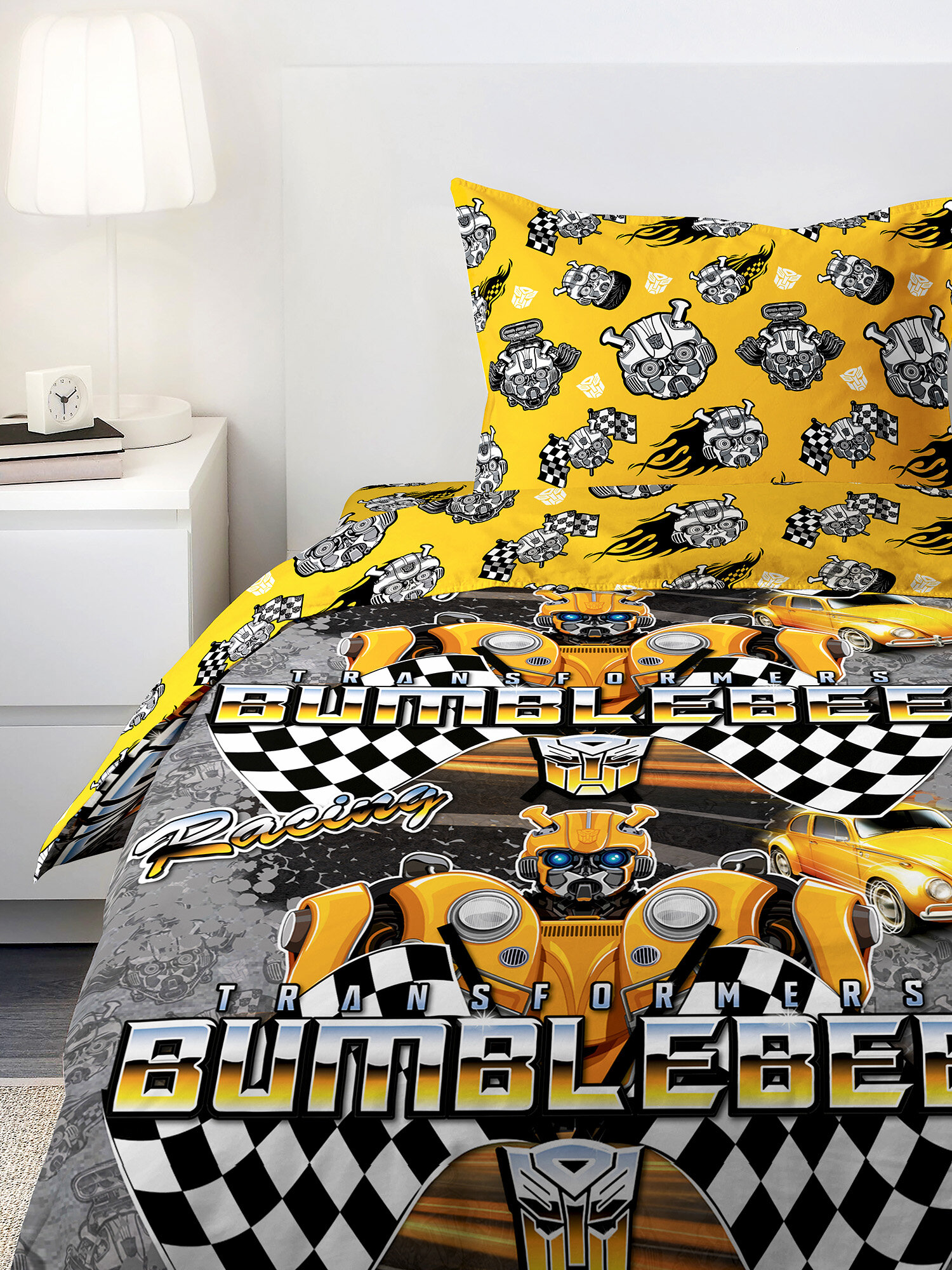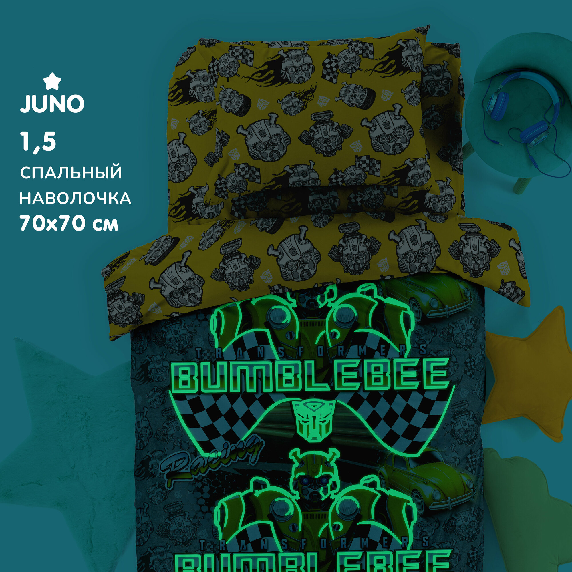 10 цен на Детское постельное белье 1,5 спальное Трансформеры Juno, поплин хлопок, 1 наволочка 70х70, постельное белье 1 5 спальное Бамблби трансформер / неон / Светится в темноте