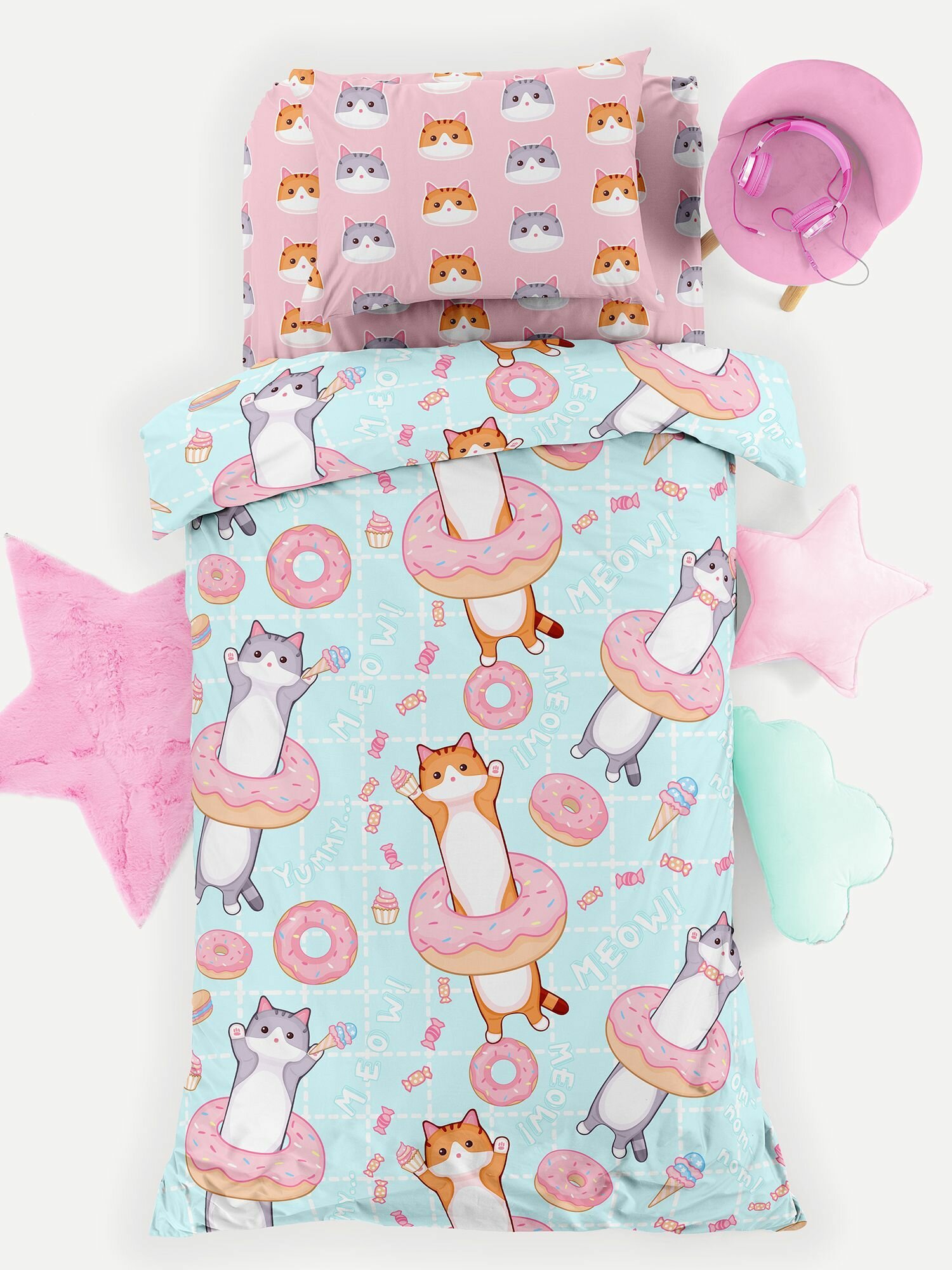 Детское постельное белье 1,5 спальное Juno, поплин хлопок, 1 наволочка 70х70, Kawaii cats 1 534 ₽