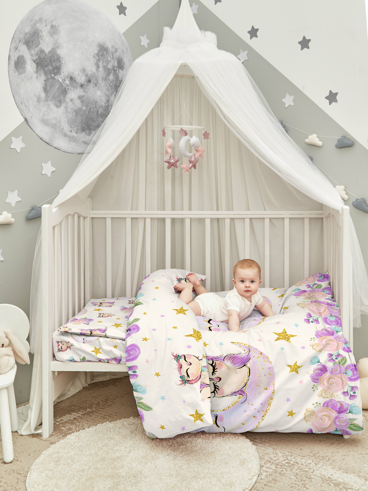 Постельное белье детское 160х80 юниорjuno, поплин хлопок, 1 наволочка 40х60, детское постельное белье в кроватку Sleep Unicorn / Единорог, комплект для малыша, для девочки 1 124 ₽