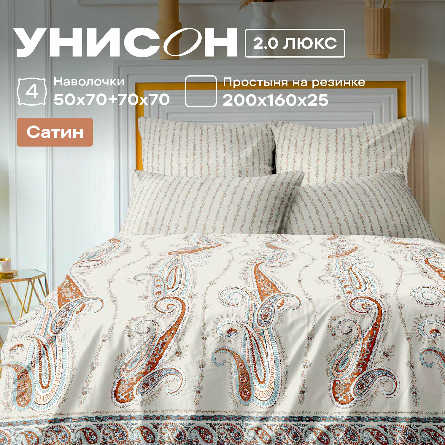 Постельное белье Евро Унисон, Сатин, 4 нав. (50х70-2шт; 70х70-2шт), на резинке, Charlotte 4 253 ₽