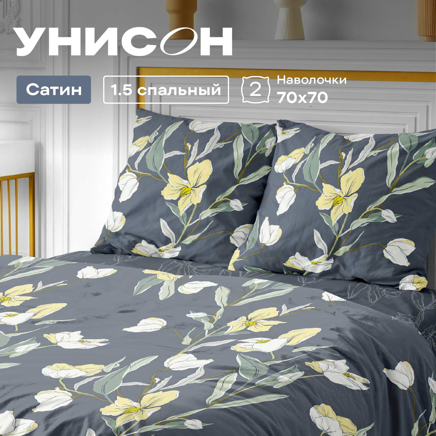 Постельное белье 1.5 спальное Унисон, Сатин, нав. 70х70, Botanica 2 579 ₽