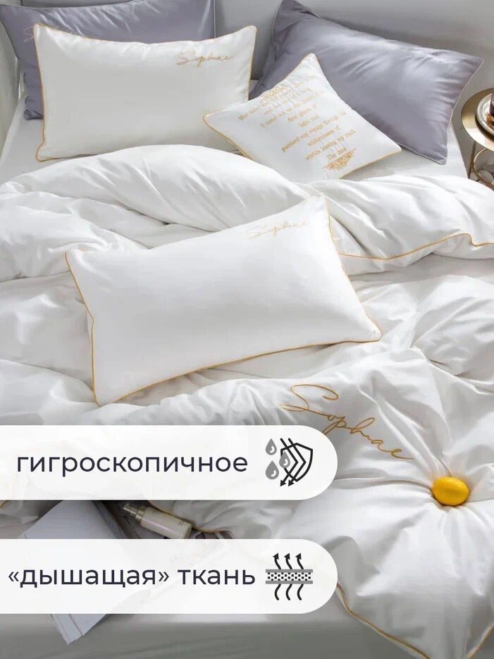Отзывы на Постельное белье евростандарт двуспальное/евро Сатин Mency Жатка/ пододеяльник 200x220/простыня 220x240/ Наволочки 50x70-2шт 70x70-2шт, Цвет Белый