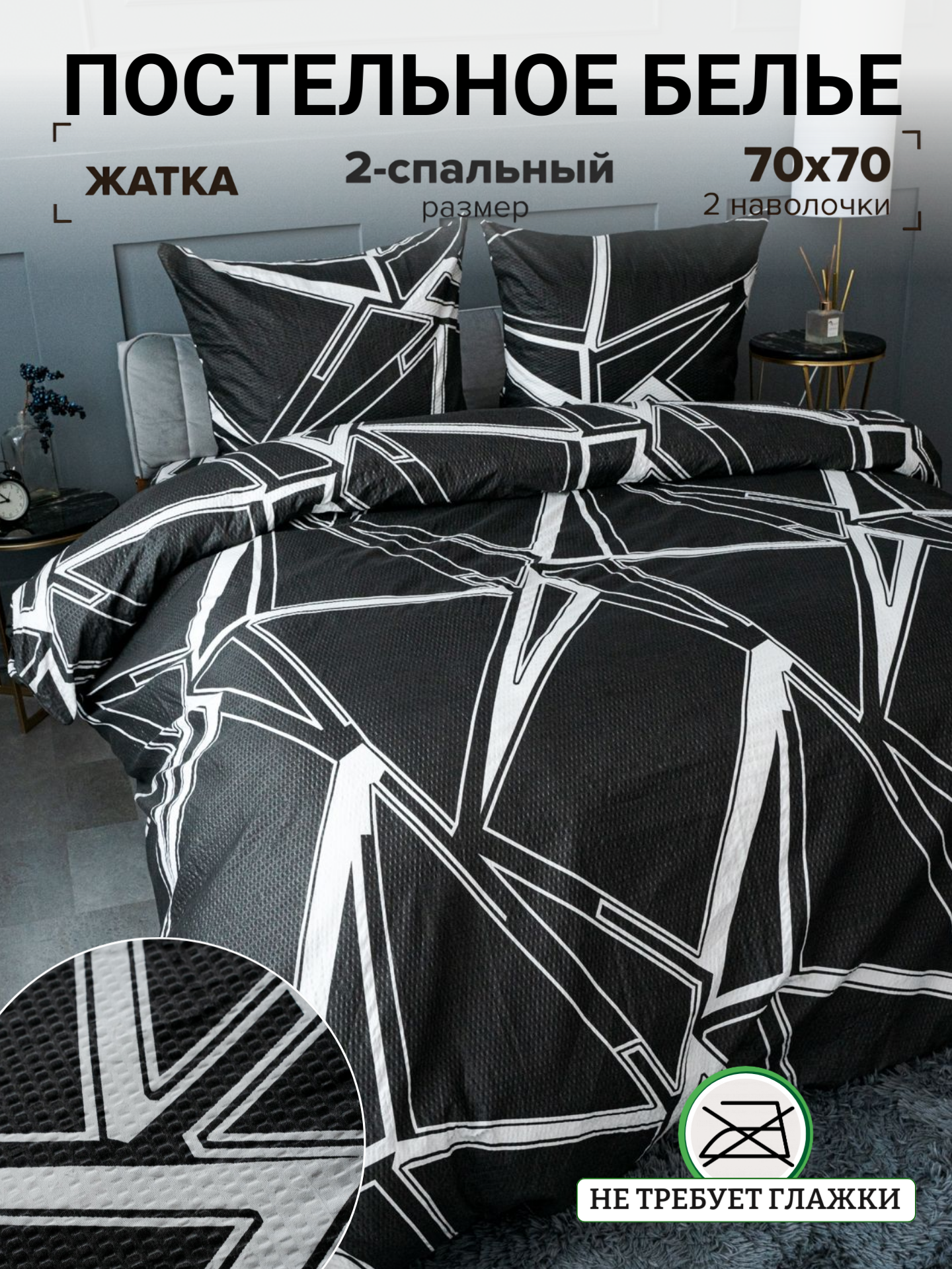 Отзывы на Постельное белье 2 спальное Павлина "Жанет" креп Разлом черно-белый