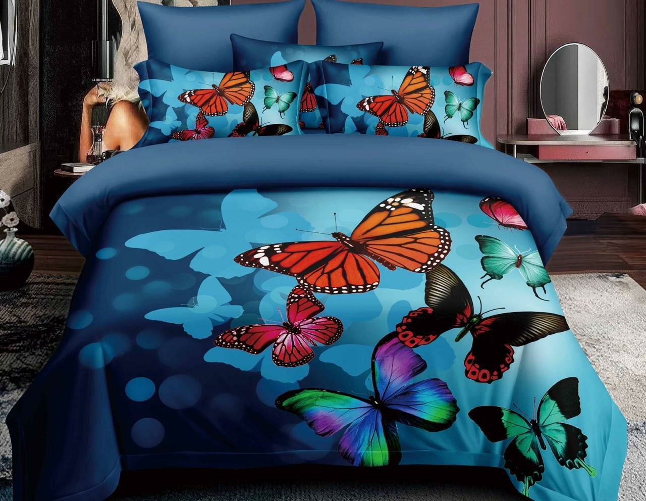 10 цен на Комплект Постельного белья 2-х спальное Бабочки/ Двуспальное / простыня 180x220 / пододеяльник 180x220 / Наволочки 70x70-2