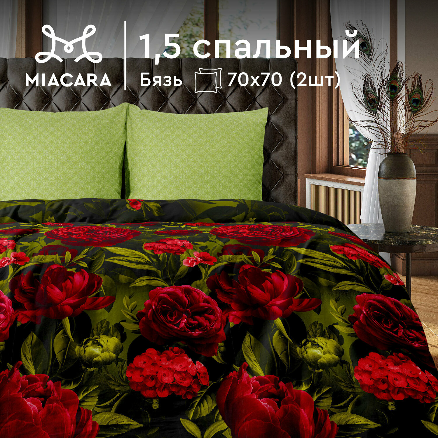 Постельное белье 1.5 спальное Mia Cara, Бязь, нав. 70х70, Малахитовая шкатулка 1 949 ₽