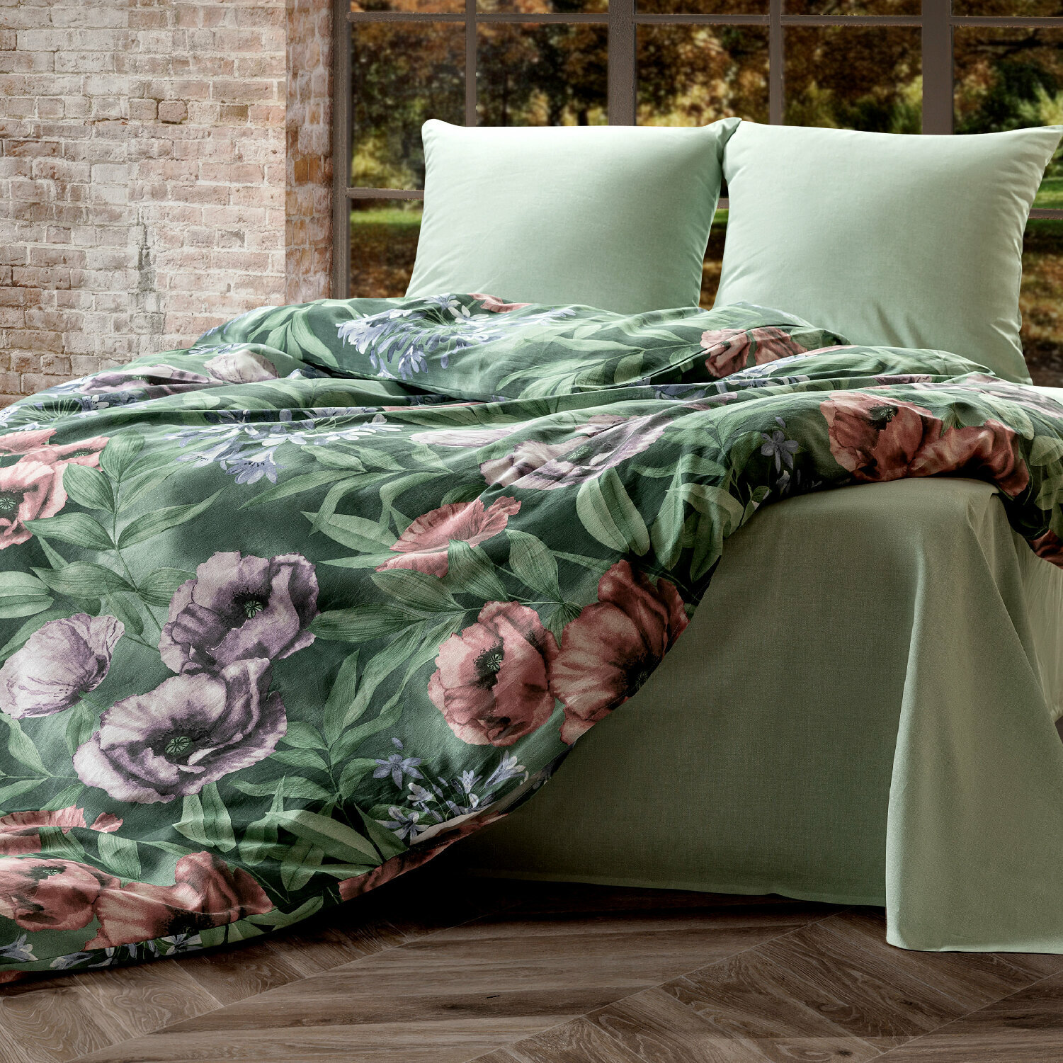 Постельное белье 1.5 спальное Mia Cara, Бязь, нав. 70х70, Shadow green 2 199 ₽