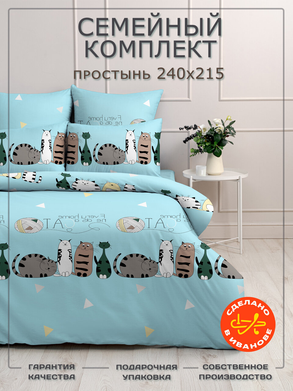 Постельное белье семейное, полисатин, 2 пододеяльника, евро простынь, семейное 1 901 ₽
