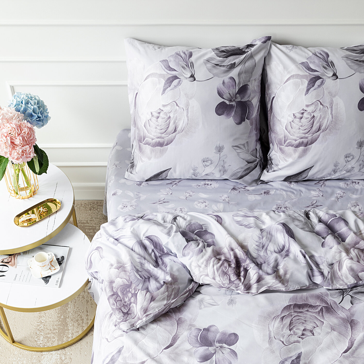 Постельное белье Евро Mia Cara, Сатин, 4 нав. (50х70-2шт; 70х70-2шт), на резинке, Ninelle 3 701 ₽