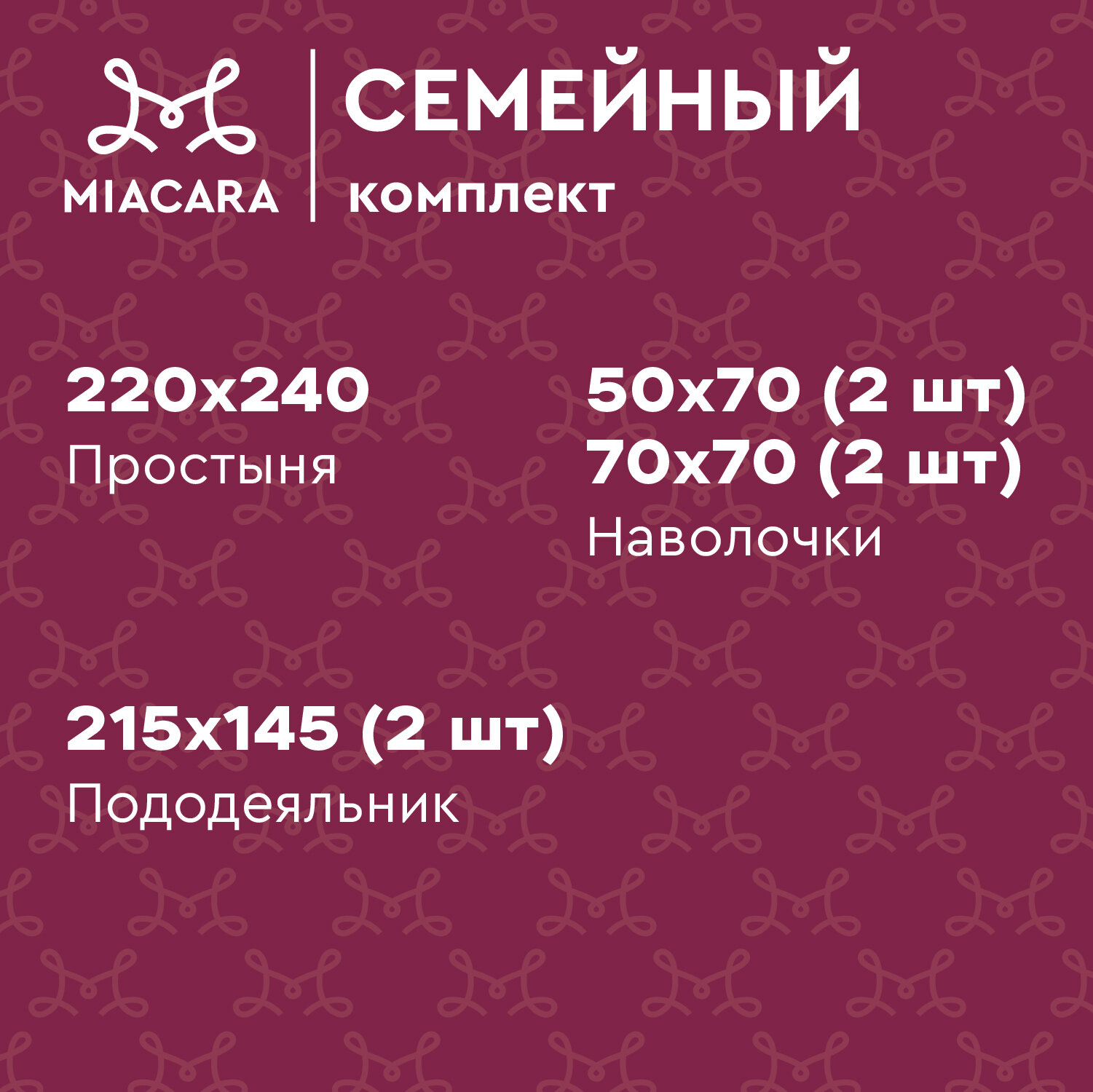 Постельное белье семейное Mia Cara, Сатин, нав. 70х70, Medici 4 244 ₽