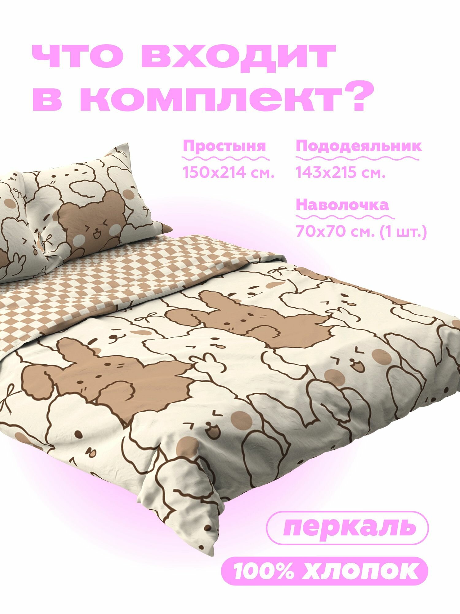 Комплект постельного белья 1,5 спальный Crazy Getup, перкаль хлопок, 1 наволочка 70х70, Cuties / Милашки, постельное белье детское рис. 16654-1/16400-2 информация: