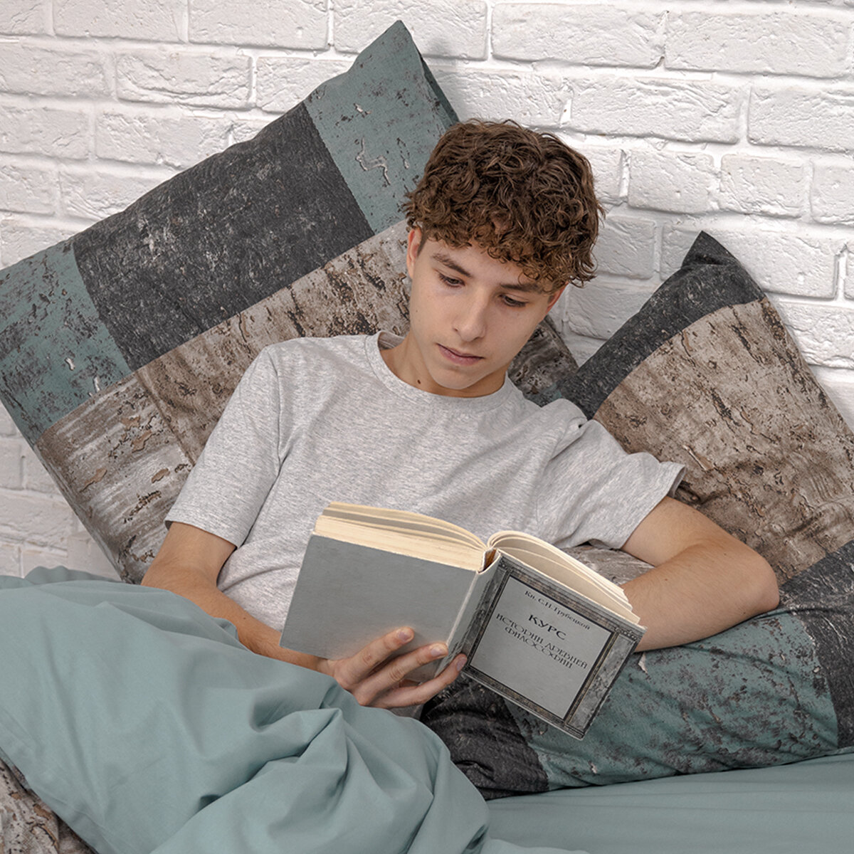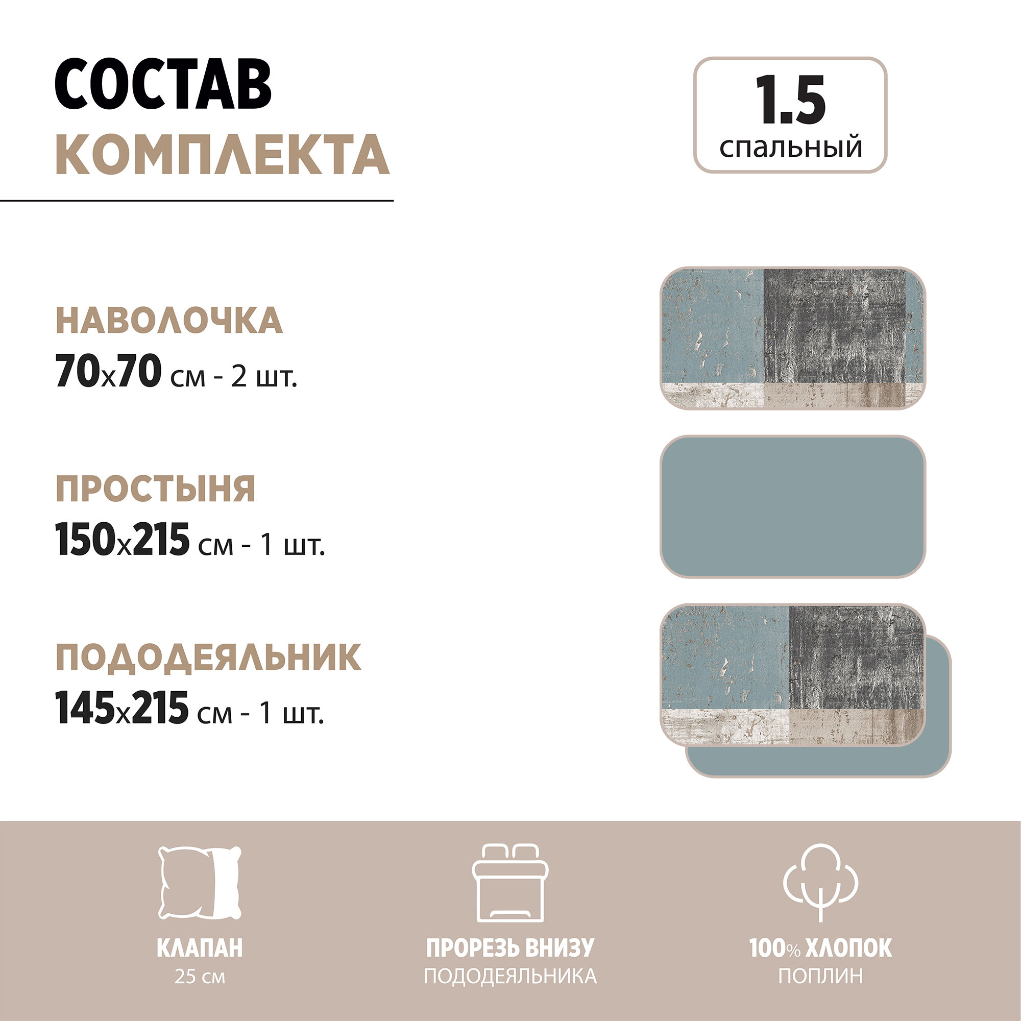 Постельное белье Сказка Сатин "Lester" 1,5-сп наволочка 50х70 1шт Простынь на резинке 90х200 см Пододеяльник 145х215 см