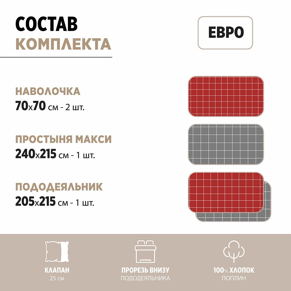 Постельное белье евро BRAVO поплин Клетка, хлопок, наволочки 70*70 - 2 шт. информация: