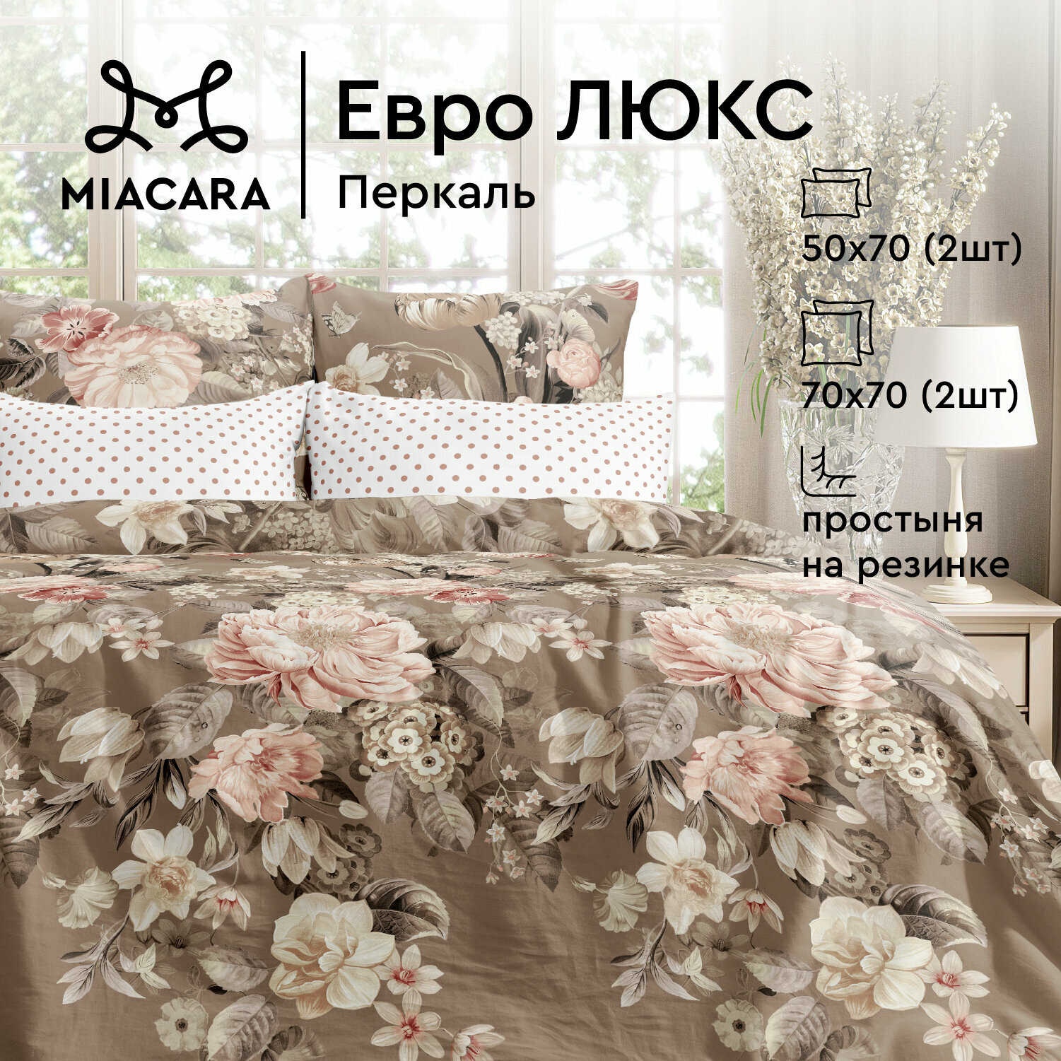 Постельное белье Евро Mia Cara, Перкаль, 4 нав. (50х70-2шт; 70х70-2шт), на резинке, Круазет информация: