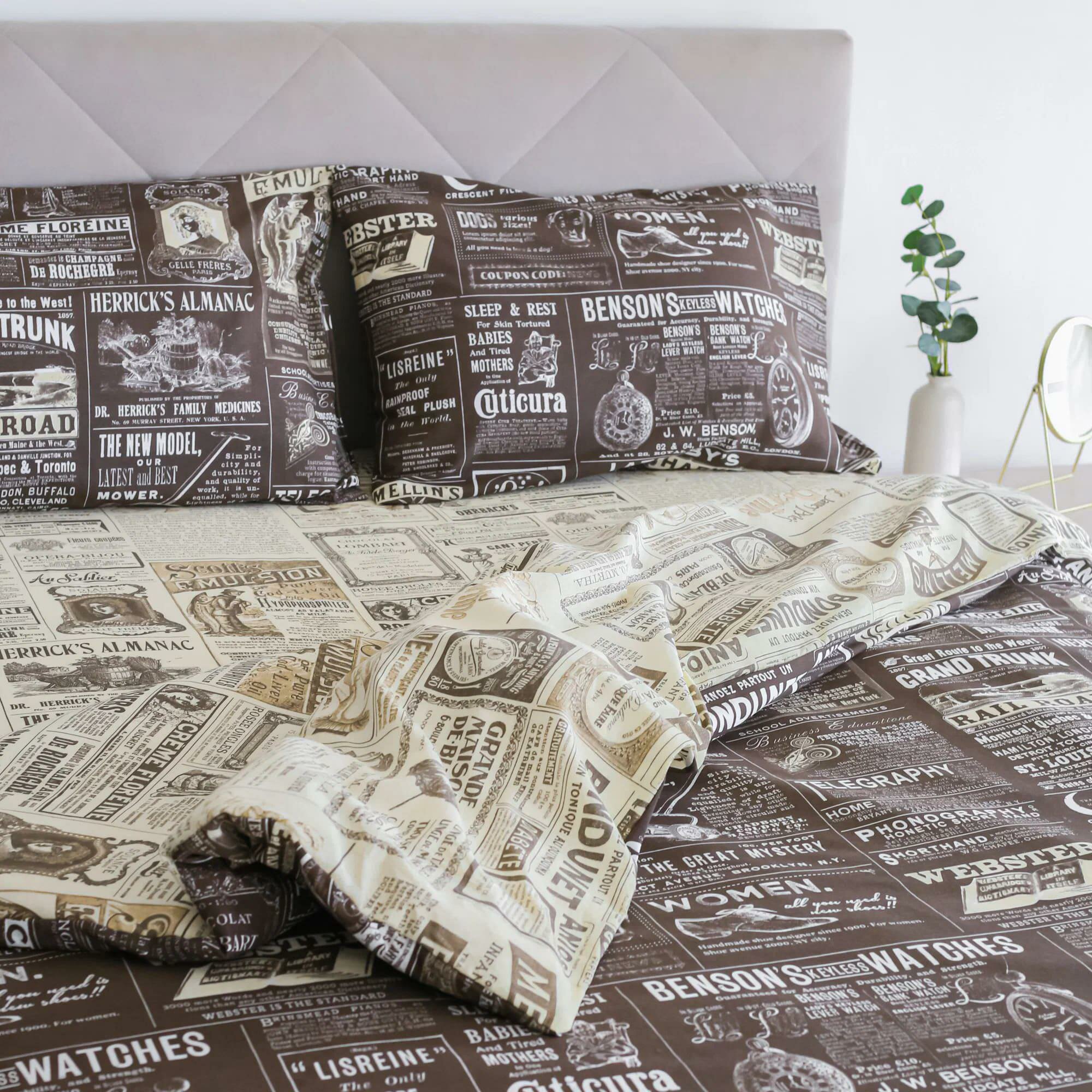 10 цен на КПБ. Бязь. "Газета", 100% хлопок. 1,5-спальное