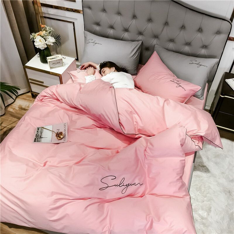 Комплект постельного белья Good Sleep из Сатина Евро Однотонное Хлопок Простыня 220x240 см Розовый Серый 2 790 ₽