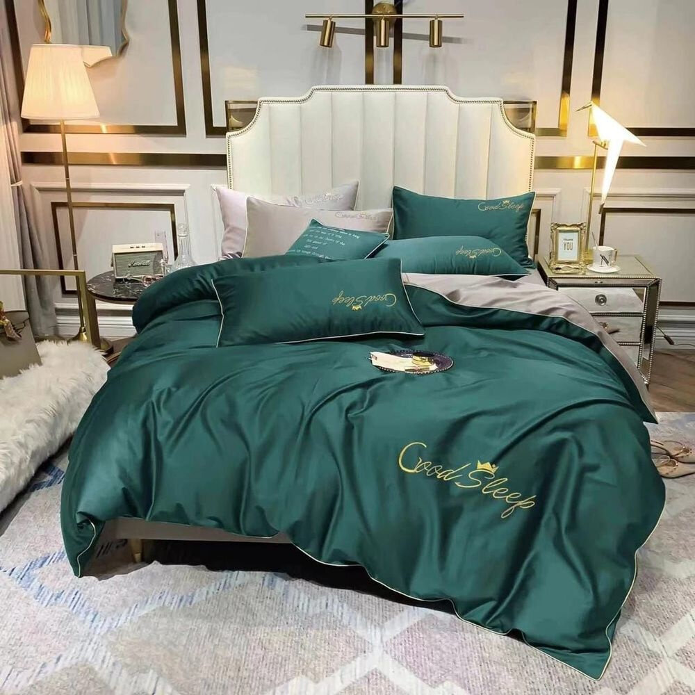 Комплект постельного белья Good Sleep из Сатина Евро Однотонное Хлопок Простыня 220x240 см Зеленый 2 790 ₽