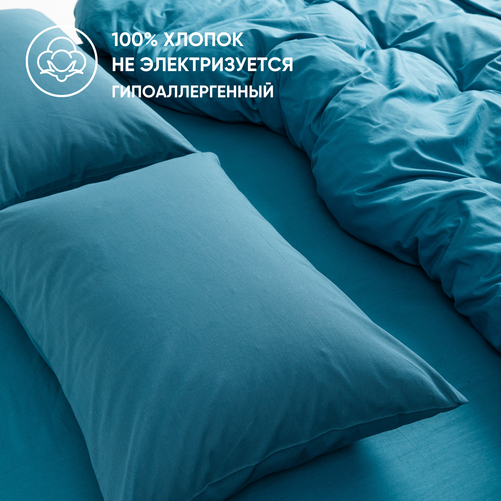 Постельное белье однотонное Urban Family (аналог икеа), Темно-бирюзовый, евро, наволочки на молнии 50х70, 100% хлопок, перкаль 2 295 ₽