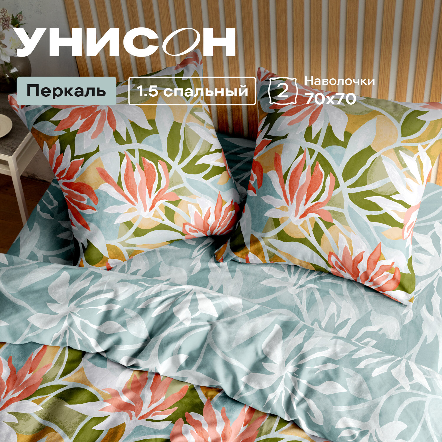 Постельное белье 1.5 спальное Унисон, Перкаль, нав. 70х70, Monique информация: