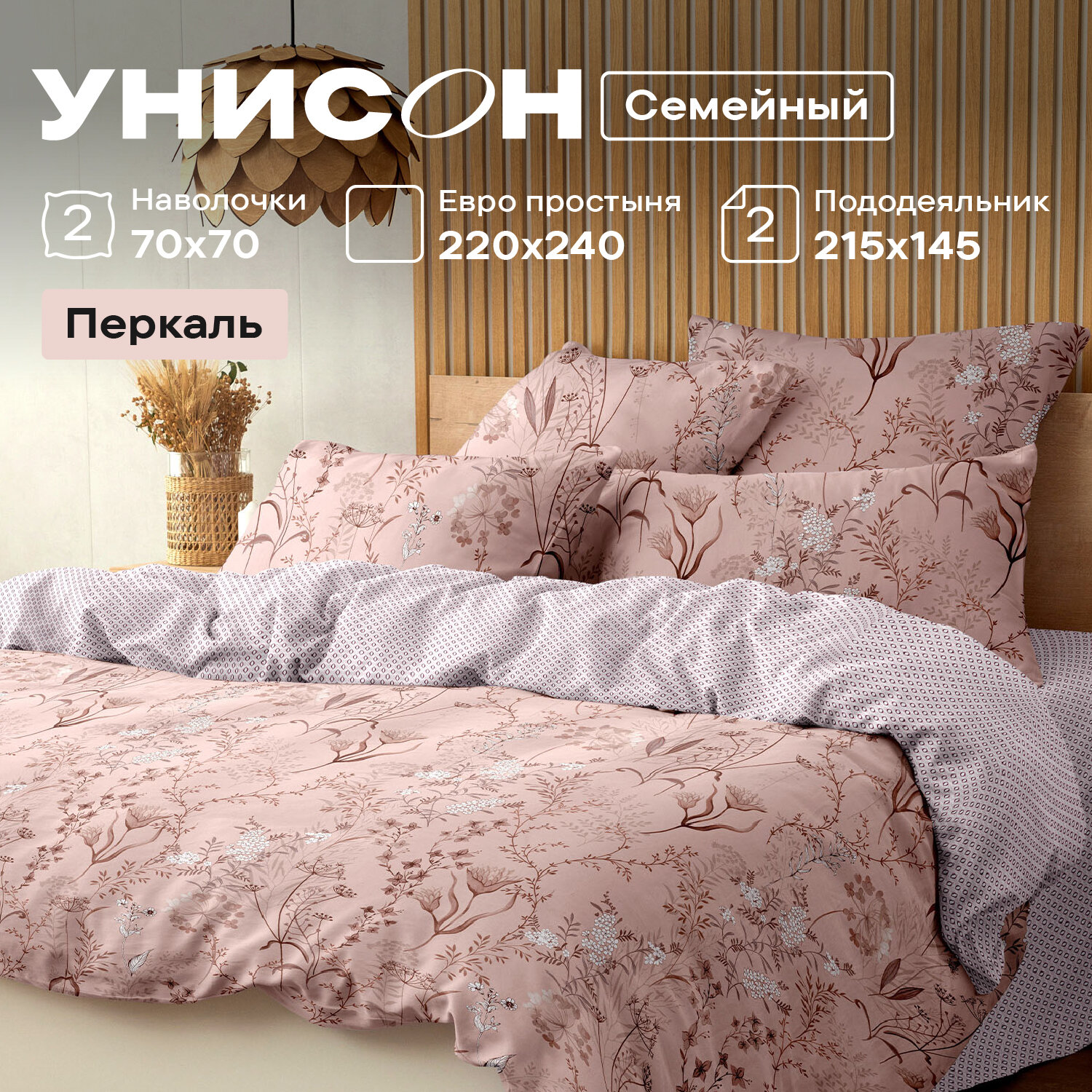 Постельное белье семейное Унисон, Перкаль, нав. 70х70, Mariolla
