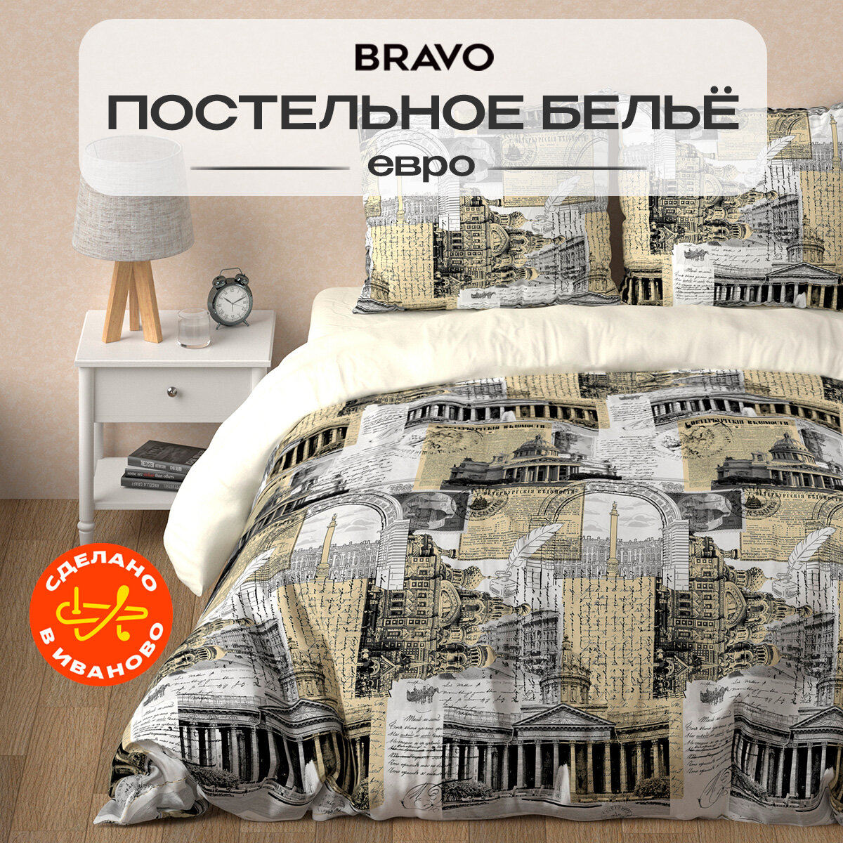 Постельное белье евро BRAVO поплин Бити / хлопок / наволочки 70*70