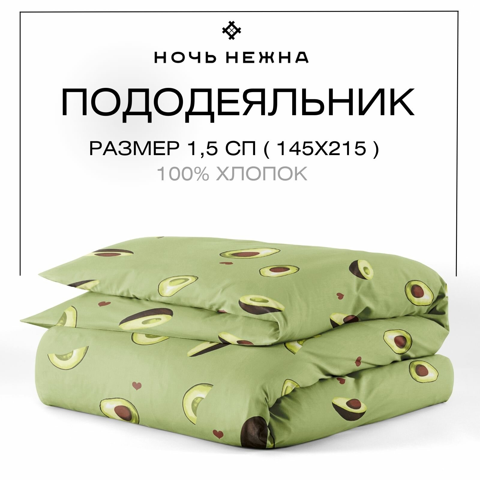Отзывы на Пододеяльник 1 5 спальный, 145х215 см, Ночь Нежна Авокадо, бязь, 100% хлопок