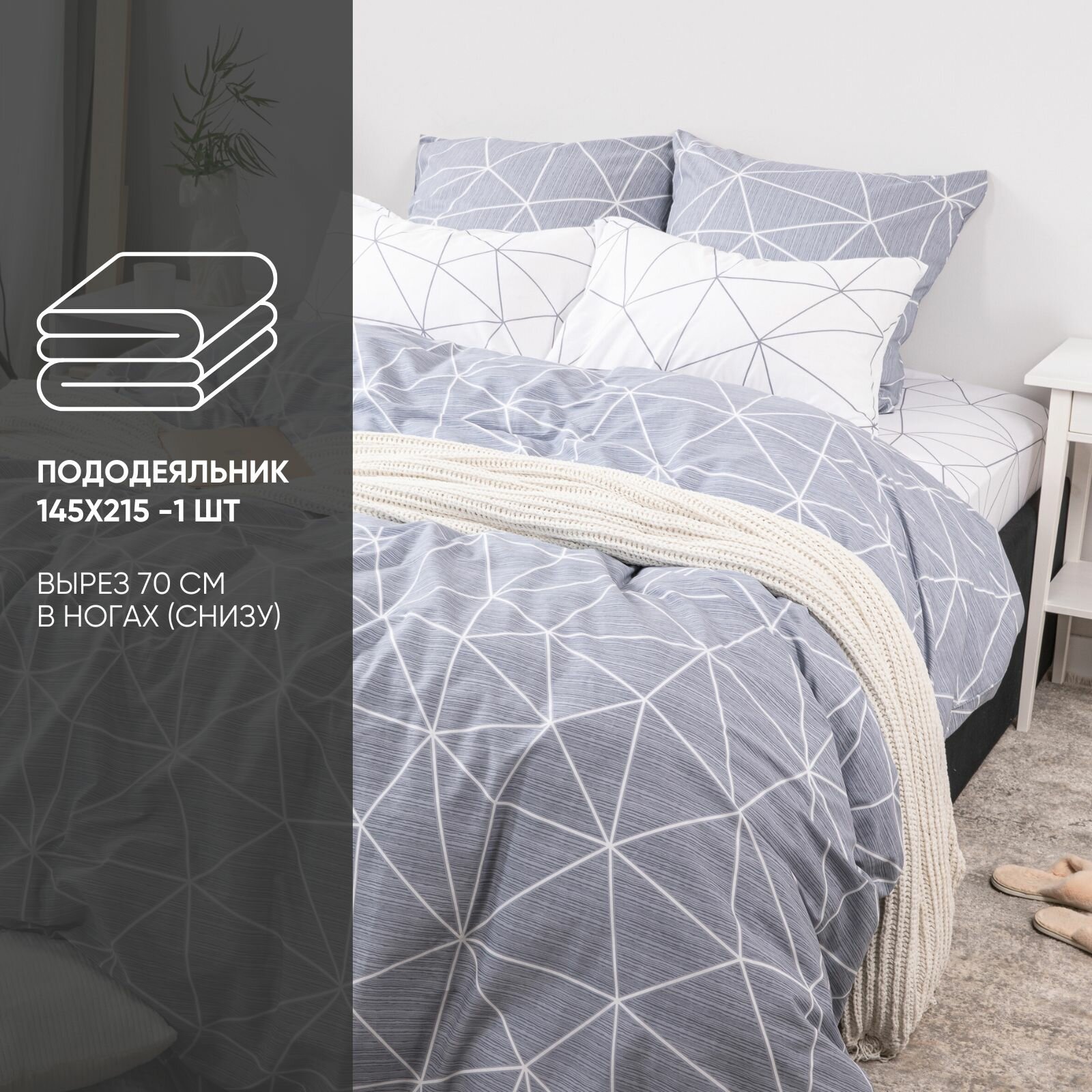 Пододеяльник/1.5 спальный/с клапаном/поплин/145х215/хлопок/Ночь Нежна/Грань серый основной 1 850 ₽