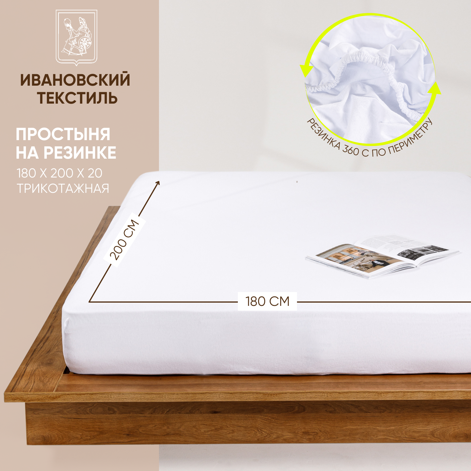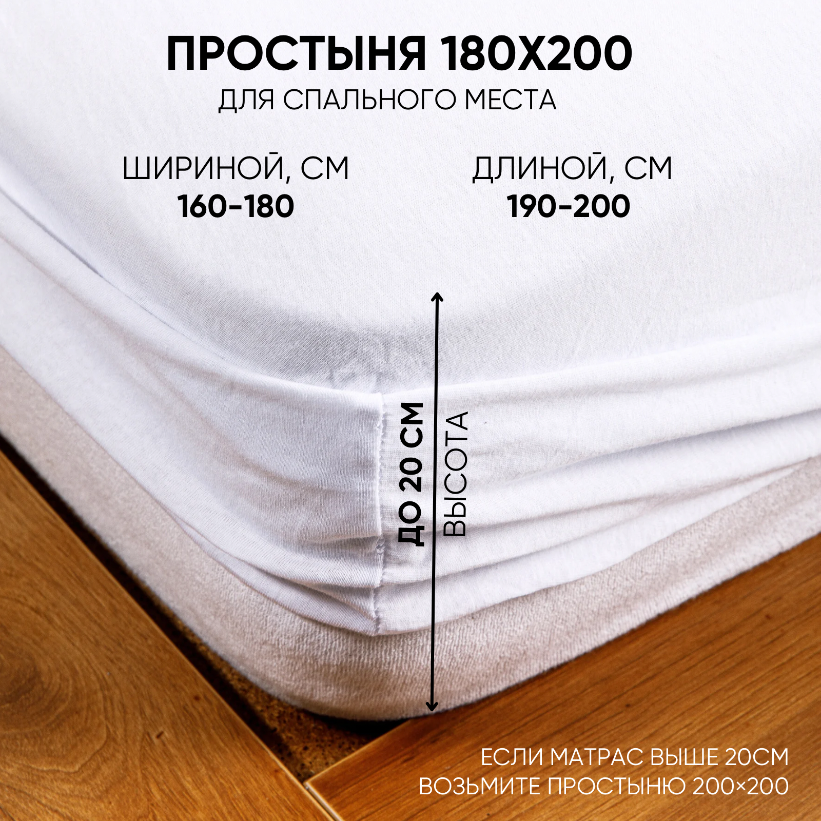 Простынь на резинке однотонная 180х200 см Ночь Нежна Белая, трикотажная, 100% хлопок, ткань кулирка информация: