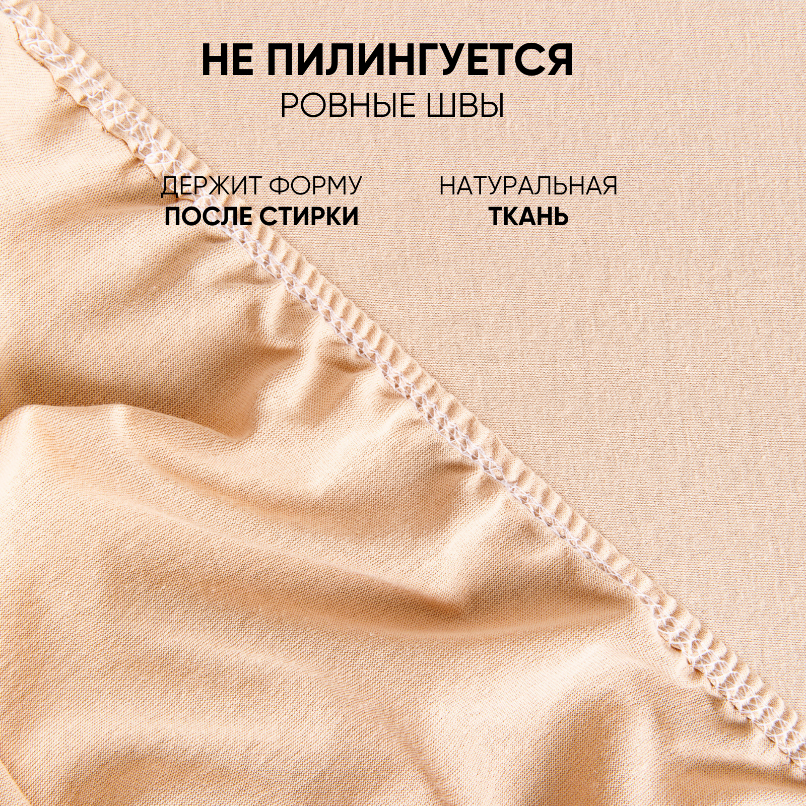 10 цен на Простынь на резинке однотонная 180х200 см Ночь Нежна Бежевая, трикотажная, 100% хлопок, ткань кулирка