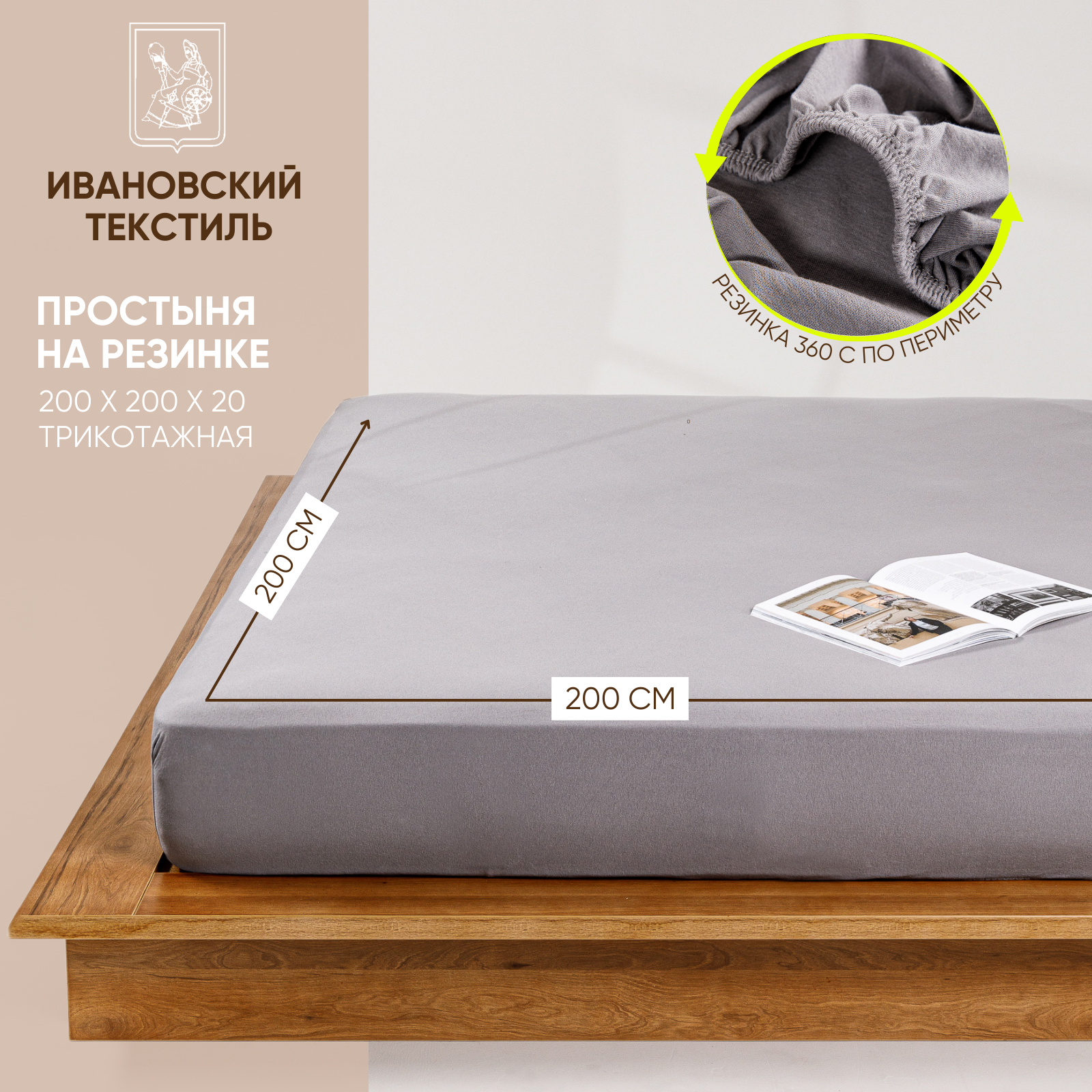 Простынь на резинке однотонная 200х200 см Ночь Нежна Серая, трикотажная, 100% хлопок, ткань кулирка информация: