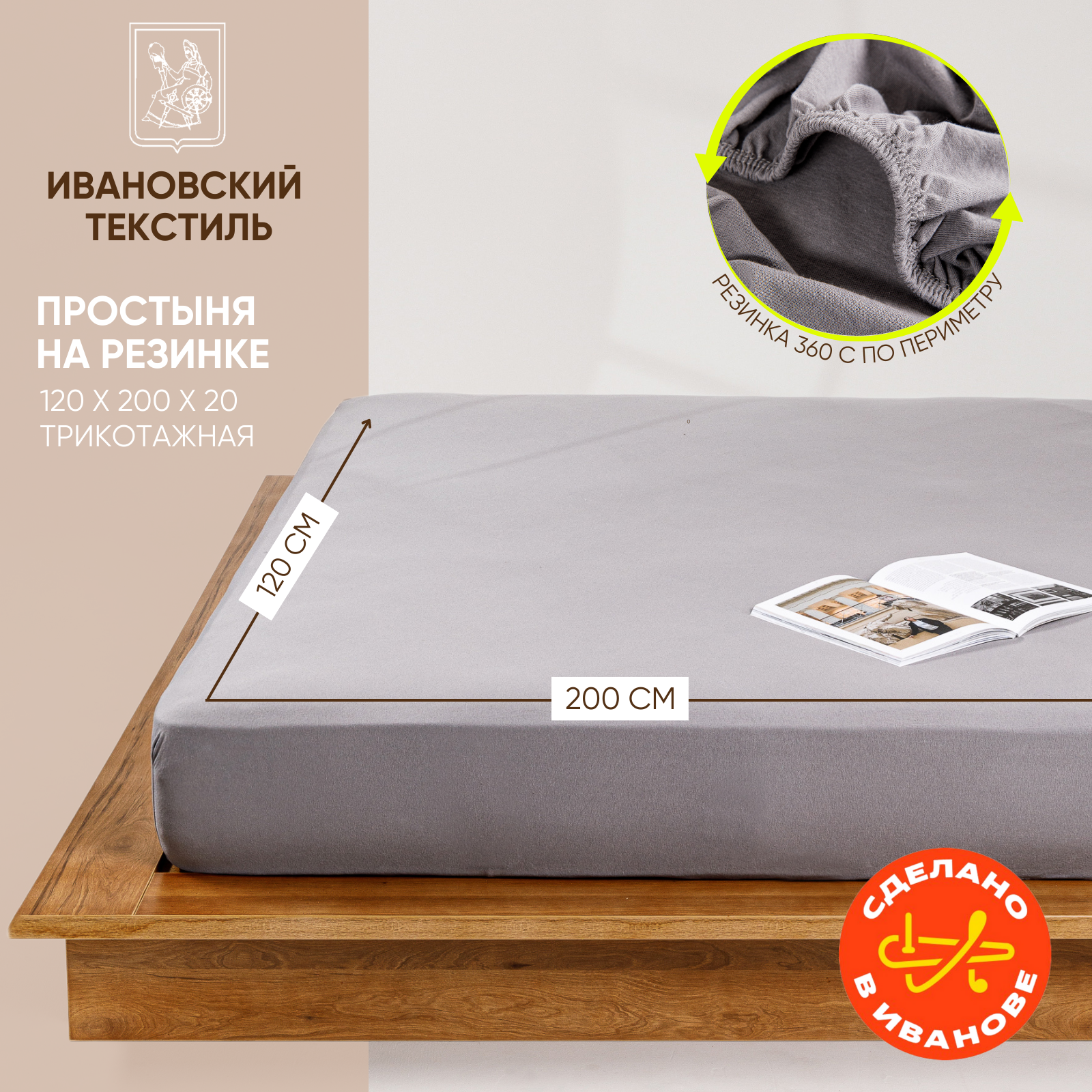 Простынь на резинке однотонная 120х200 см Ночь Нежна Серая, трикотажная, 100% хлопок, ткань кулирка информация: