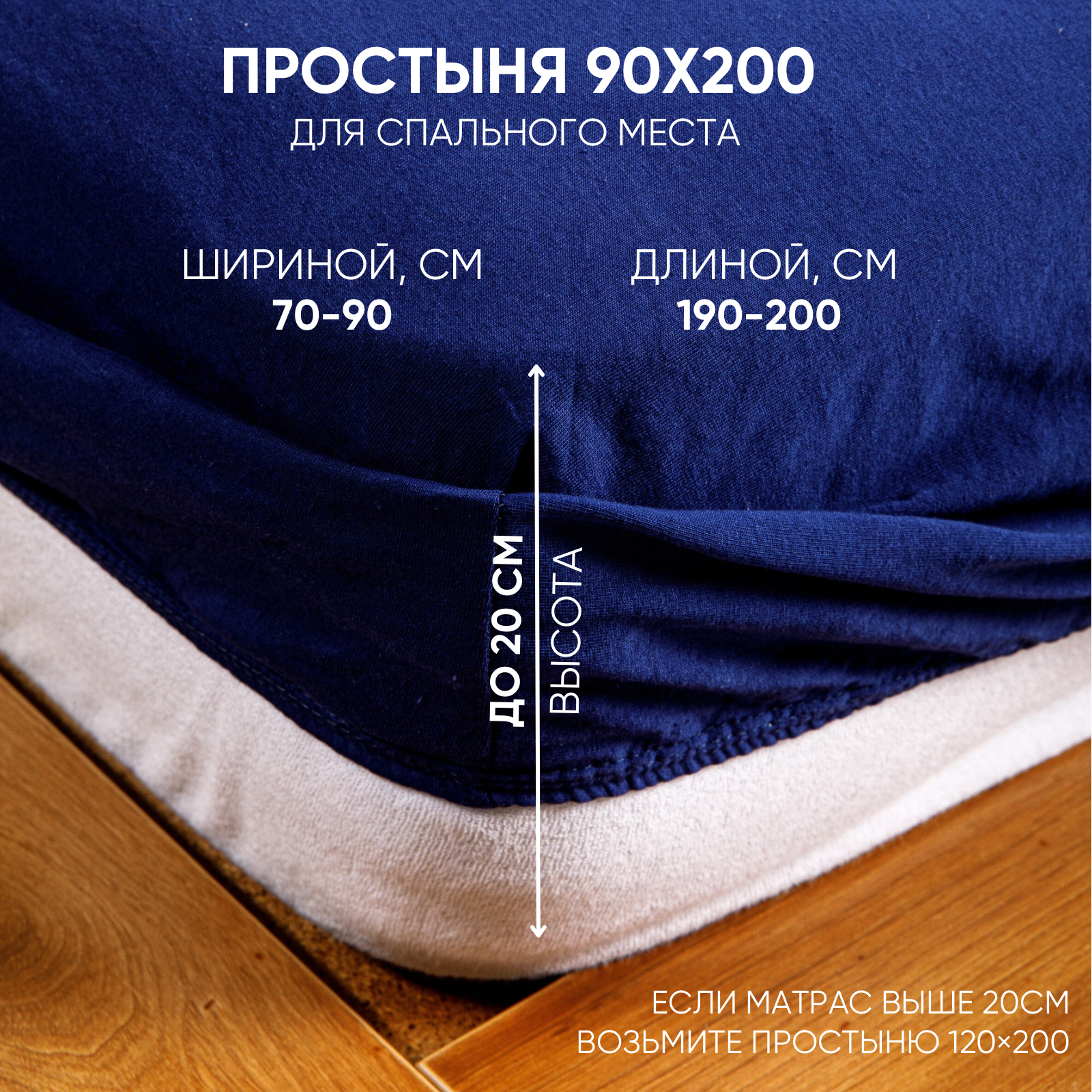 Простынь на резинке однотонная 90х200 см Ночь Нежна Синяя, трикотажная, 100% хлопок, ткань кулирка информация:
