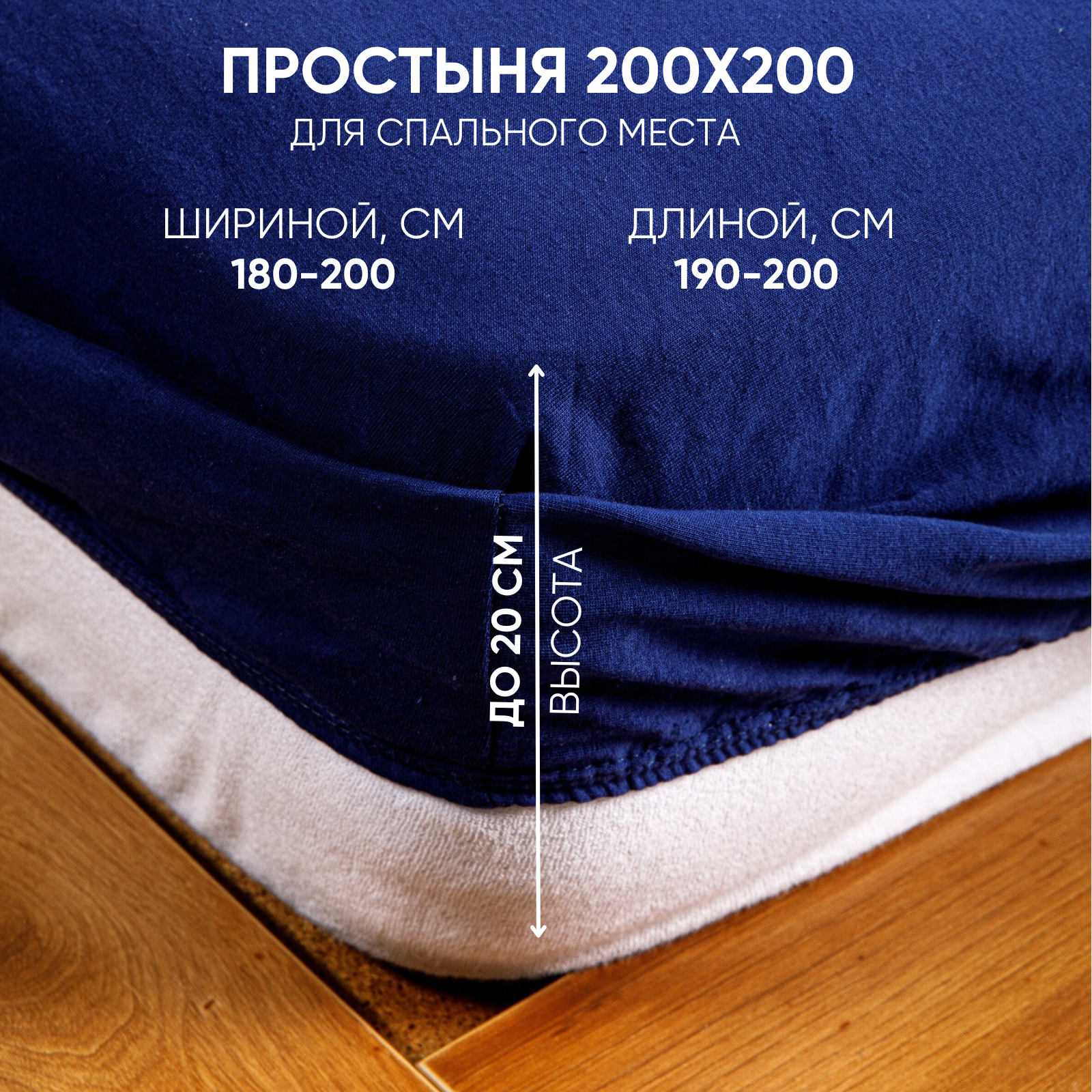 Отзывы на Простынь на резинке однотонная 200х200 см Ночь Нежна Синяя, трикотажная, 100% хлопок, ткань кулирка