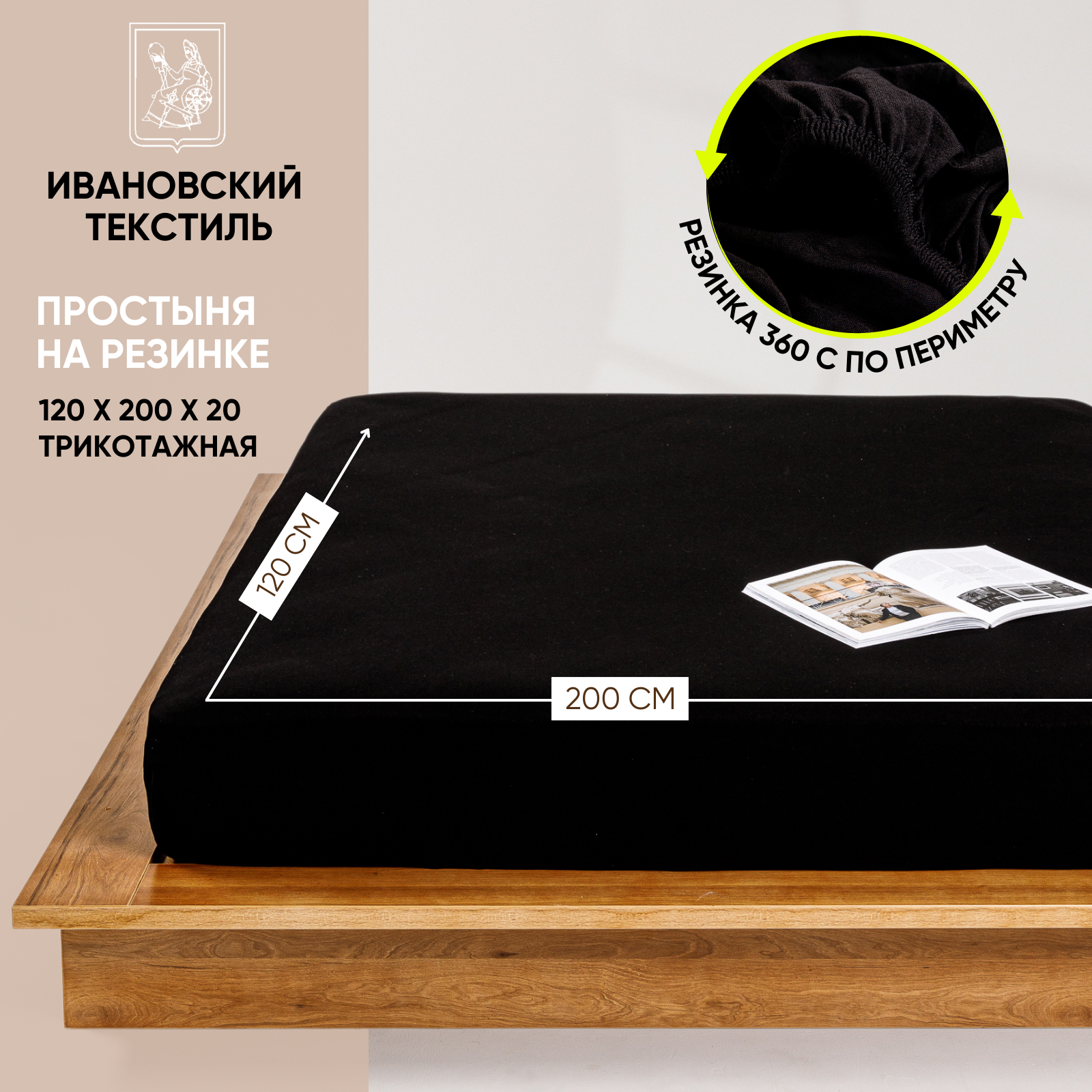 10 цен на Простынь на резинке однотонная 120х200 см Ночь Нежна Черная, трикотажная, 100% хлопок, ткань кулирка