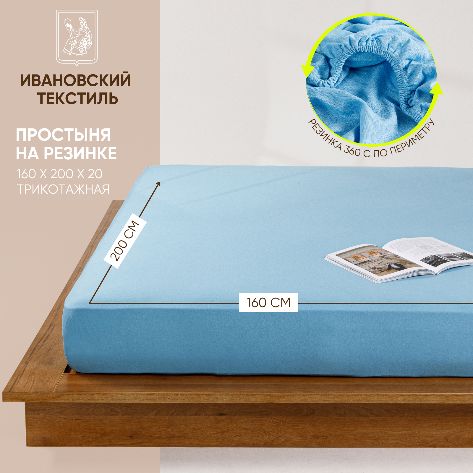 Простынь на резинке однотонная 160х200 см Ночь Нежна Голубая, трикотажная, 100% хлопок, ткань кулирка информация: