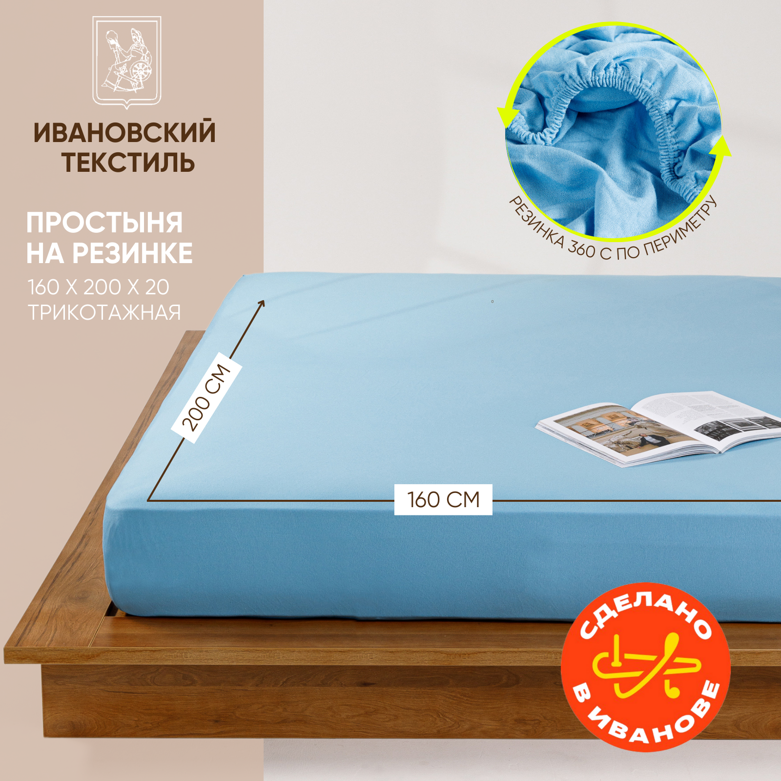 Отзывы на Простынь на резинке однотонная 160х200 см Ночь Нежна Голубая, трикотажная, 100% хлопок, ткань кулирка