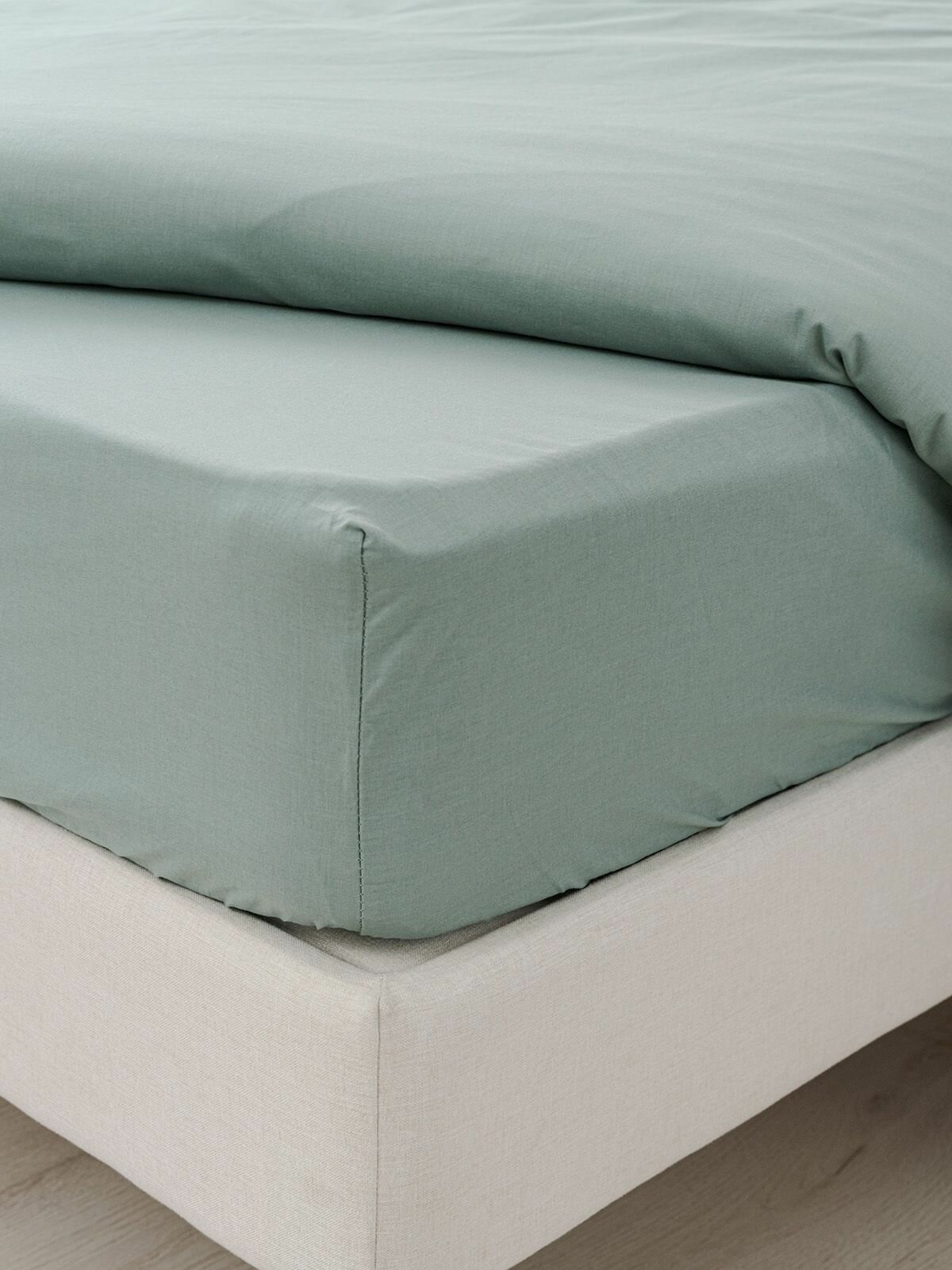 Простыня на резинке 180х200+26, YERRNA , перкаль, морозно-зеленый